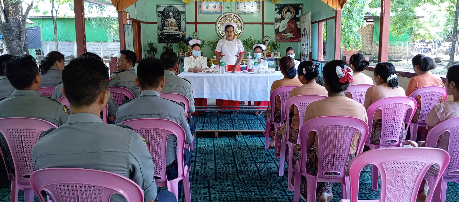 ထို့နောက် ပြည်သူ့ကျန်းမာရေးဦးစီးဌာန ကျန်းမာရေးဆရာမများက ရဲစခန်းအတွင်းရှိ မိသားစုနေအိမ်များသို့ သွားရောက်ကာ ခြင်ပေါက်ပွားမှုမရှိစေရေး ဖုံး၊ သွန်၊ လဲ၊ စစ် လုပ်ငန်းများ ဆောင်ရွက်ပေးခြင်း၊ ရေလှောင်ကန်များအတွင်း အဘိတ်ဆေးခတ်ပေးခြင်း၊ ခြင်ခိုအောင်းနိုင်မှု မရှိစေရေး လိုက်နာဆောင်ရွက်ရမည့်အချက်များကို အကျယ်တဝင့် ရှင်းလင်းဆွေးနွေး ပေးခဲ့သည်။