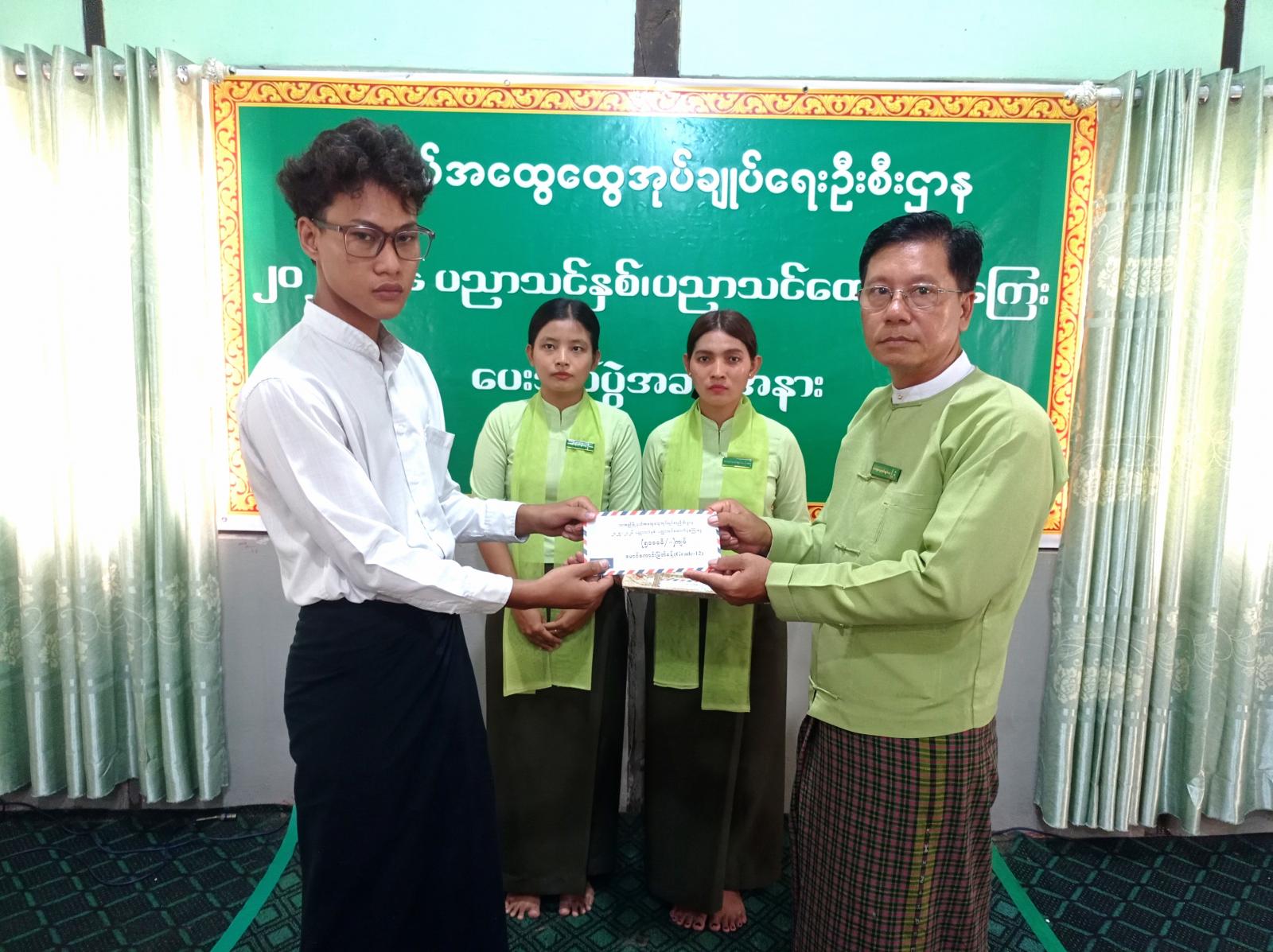 ပညာသင်ထောက်ပံ့ကြေးပေးအပ်ပွဲအခမ်းအနားတွင် မြို့နယ်စီမံအုပ်ချုပ်ရေးအဖွဲ့ဥက္ကဋ္ဌ မြို့နယ်အုပ်ချုပ်ရေးမှူး ဦးမျိုးသက်ကျော်က အမှာစကားပြောကြားသည်။ ဆက်လက်ပြီး မြို့နယ်စီမံအုပ်ချုပ်ရေးအဖွဲ့ဥက္ကဋ္ဌနှင့်အဖွဲ့ဝင်များ၊ မြို့နယ်အမျိုးသမီးရေးရာအဖွဲ့ဥက္ကဋ္ဌ ဒေါ်ဝေဝေခိုင်နှင့်အဖွဲ့ဝင်များ၊ မြို့နယ်မိသားစုစည်းရုံးရေးနှင့်စည်းကမ်းထိန်းသိမ်းရေးကော်မတီဝင်များ၊ မြို့နယ်မိခင်နှင့်ကလေးစောင့်ရှောက်ရေးအသင်းဝင်များနှင့်တာဝန်ရှိသူများက တက္ကသိုလ်အဆင့်ကျောင်းသား/သူ ၁၀ ဦးတို့အားတစ်ဦးလျှင်ငွေကျပ် ၆၀၀၀၀ နှုန်း၊ Grade-12 ပြန်လည်ဖြေဆိုမည့် ကျောင်းသား/သူ လေးဦးတို့အား တစ်ဦးလျှင် ၅၀၀၀၀ နှုန်း၊ အထက်တန်းအဆင့် ၁၀ ဦးအား တစ်ဦးလျှင် ငွေကျပ် ၅၀၀၀၀ နှုန်း၊ အလယ်တန်း အဆင့် ၈ ဦးတို့အား တစ်ဦးလျှင် ငွေကျပ် ၄၀၀၀၀ နှုန်း၊ မူလတန်းအဆင့် ၃၇ ဦးတို့အား တစ်ဦးလျှင် ငွေကျပ် ၃၀၀၀၀ နှုန်းနှင့် မူကြိုကျောင်းသား/သူ ၅ ဦးတို့အား တစ်ဦးလျှင်ငွေကျပ် ၂၀၀၀၀ နှုန်းတို့ဖြင့် ပညာသင်ထောက်ပံ့ကြေးများ ပေးအပ်သည်။