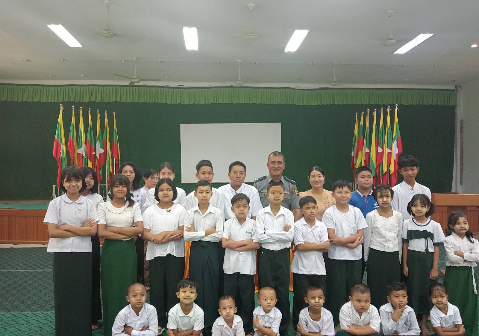 ယင်းနောက် ရဲမှူးရန်နိုင်မှ နိဂုံးချုပ် အမှာစကားပြောကြားပြီး ကျောင်းသား၊ ကျောင်းသူများနှင့် စုပေါင်းမှတ်တမ်းဓာတ်ပုံများ ရိုက်ကူးကာ ပေးအပ်ပွဲအခမ်းအနားကို တပ်ဖွဲ့ဝင်နှင့်ဇနီးများ ကျောင်းသား၊ ကျောင်းသူများ စုစုပေါင်းအင်အား (၇၀)ဦးခန့် တက်ရောက်ခဲ့ကြောင်း သိရသည်။