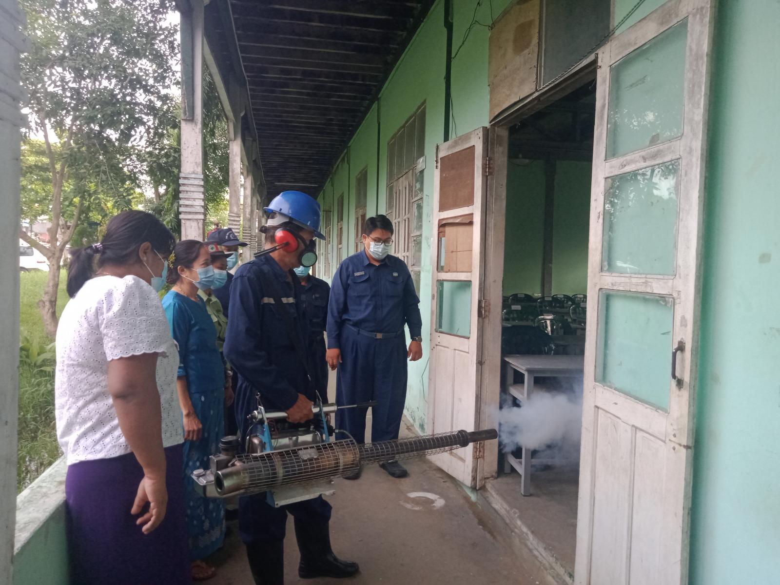 ထိုသို့ ဆောင်ရွက်ရာတွင် အမှတ် (၅) ရပ်ကွက်ရှိ အမှတ် (၄) အခြေခံပညာအထက်တန်းကျောင်းတွင် ခြင်ကြောင့်ဖြစ်ပွားနိုင်သော သွေးလွန် တုပ်ကွေးရောဂါများ ကာကွယ်နိုင်ရေး၊ ပိုးလောက်လန်းပေါက်ပွားမှုမှ ကာကွယ်နိုင်ရေး၊ ရေတင်ကျန်နိုင်သော ဘူးခွက်များ၊ ရေပုံး၊ ရေအိုးများ၊ ဘုရားပန်းအိုးများကို ဖုံး၊ သွန်၊ လဲ၊ စစ် လုပ်ငန်းများဆောင်ရွက်ပြီး ရေတိုင်ကီနှင့် ကျောက်စည်ပိုင်း၊ ရေအုတ်ကန်များအတွင်း အဘိတ် (abate) ဆေးခပ်ခြင်း၊ အသိပညာပေးလက်ကမ်းစာစောင်များဖြန့်ဝေပေးခြင်း၊ ကျန်းမာရေး အသိပညာပေးပြောကြားခြင်း၊ ခြင်ဆေးဖြန်းခြင်းလုပ်ငန်းများ ဆောင်ရွက်ပေးခဲ့သည်။