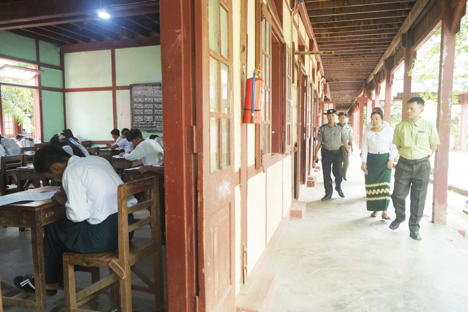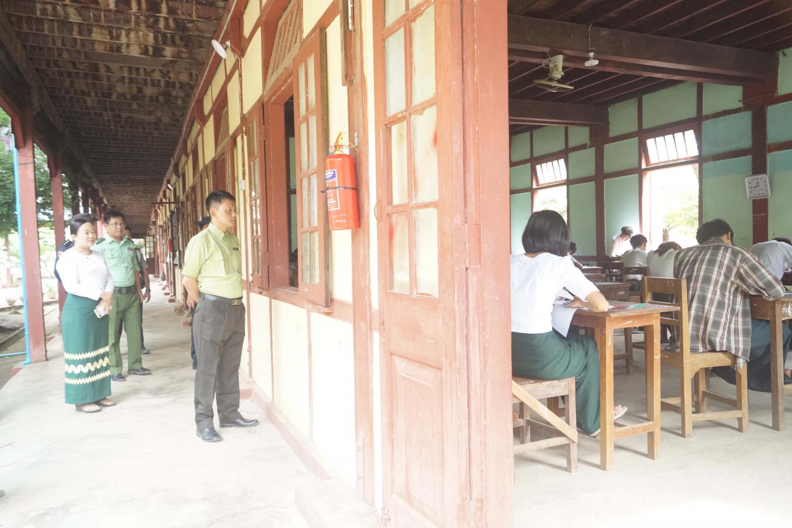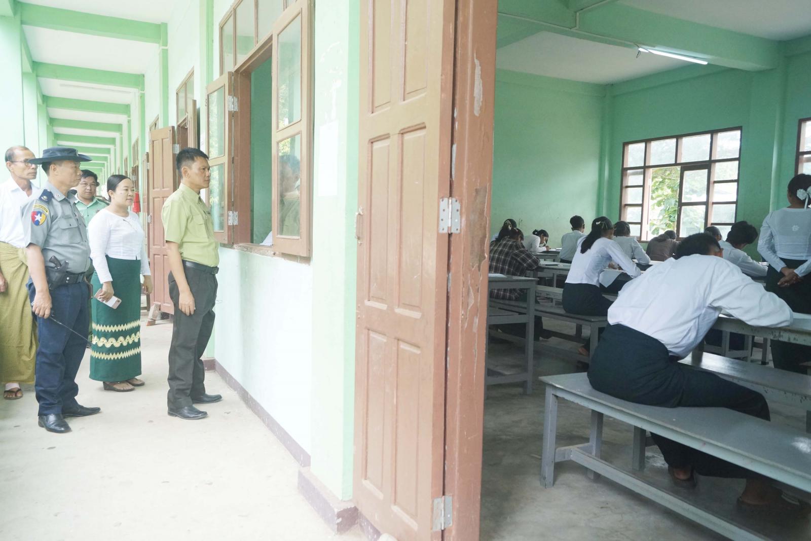 ထိုသို့ကြည့်ရှုအားပေးရာတွင် မြို့နယ်စီမံအုပ်ချုပ်ရေးအဖွဲ့ဉက္က ဦးမျိုးမင်းသိန်းနှင့် အဖွဲ့ဝင်များ၊ မြို့နယ်ပညာရေးမှူးနှင့် တာဝန်ရှိသူများက ကျောင်းသား/သူများ တက္ကသိုလ်ဝင်စာမေးပွဲ အေးချမ်းစွာ ဖြေဆိုနေကြသည့် စာဖြေခန်းများသို့ သွားရောက်ကြည့်ရှု အားပေးကြပြီး စာစစ်ဌာနတွင် တာဝန်ထမ်းဆောင်ကြသည့် ကြီးကြပ်ရေးမှုးများ၊ တာဝန်ရှိသူများ၏ မေးခွန်း/ အဖြေလွှာများ လုံခြုံရေးကဏ္ဍအလိုက်ဆောင်ရွက်မှု၊ စာရေးကိရိယာများ အသင့်စီစဉ်ထားရှိမှု၊ ကျန်းမာရေးစောင့်ရှောက်မှု၊ ဌာနဆိုင်ရာ တာဝန်ရှိသူများ၏ ကျောင်းဝင်းအတွင်း/အပြင် မီးဘေး၊ လုံခြုံရေးလုပ်ငန်းများ ဆောင်ရွက်မှုများအား လှည့်လည်ကြည့်ရှုစစ်ဆေးရာ စနစ် တကျဆောင်ရွက်ထားရှိကြောင်း သိရသည်။
