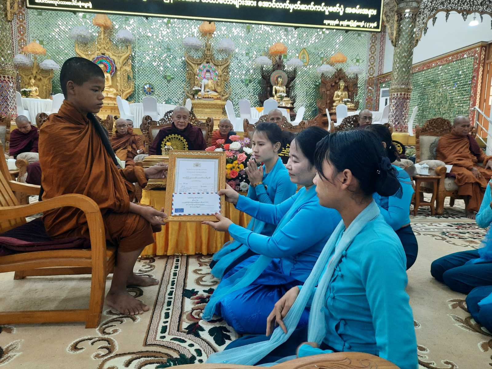 ရန်ကုန်တိုင်းဒေသကြီး၊ ဗိုလ်တထောင်ခရိုင်၊ ဗိုလ်တထောင်မြို့နယ်၌ ၂၀၂၄ ခုနှစ်၊ ဓမ္မာစရိယစာအောင်သံဃာများနှင့် ပါဠိပထမပြန်စာအောင်သံဃာများ အောင်လက်မှတ်ဆက်ကပ်ပူဇော်ပွဲအခမ်းအနားကို ဇွန် ၁၃ ရက်နေ့ ညနေ ၃ နာရီအချိန်က ဗိုလ်တထောင်ကျိုက်ဒေးအပ်ဆံတော်ဦးစေတီတော် ဆိပ်ကမ်းလုပ်သားပေါင်းစုံဓမ္မာရုံ၌ ကျင်းပပြုလုပ်ခဲ့သည်။