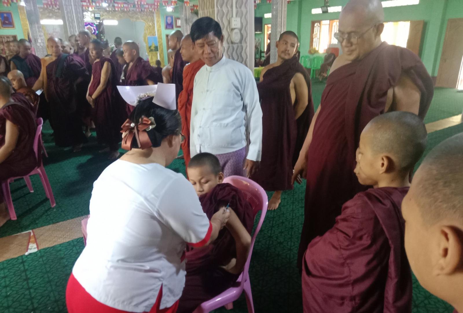 ထိုသို့ ထိုးနှံဆောင်ရွက်ပေးရာတွင် မြို့နယ်ပြည်သူ့ကျန်းမာရေးဦးစီးဌာနမှ ကျန်းမာရေး ဝန်ထမ်းများက အသက် ၁၈ နှစ်ပြည့်ပြီး ကိုဗစ်-၁၉ကာကွယ်ဆေး တစ်ကြိမ်တစ်ခါမှ ထိုးနှံခဲ့ခြင်း မရှိသူများနှင့် ကိုဗစ်-၁၉ ကာကွယ်ဆေးထိုးနှံပြီး ခြောက်လပြည့်ပြီးသူများအား Pfizer COVID-19 JN1 ကာကွယ်ဆေးထိုးနှံပေးခြင်းကို လှည်းကူးမြို့နယ်၊ စစ်ကိုင်းဘုန်းတော်ကြီးကျောင်းရှိ သံဃာတော်(၂၅၇)ပါးနှင့် လူပုဂ္ဂိုလ်(၂၅)ဦးတို့အား ကိုဗစ်-၁၉ရောဂါကာကွယ် ထိုးနှံပေးခဲ့ကြောင်း သိရှိရသည်။