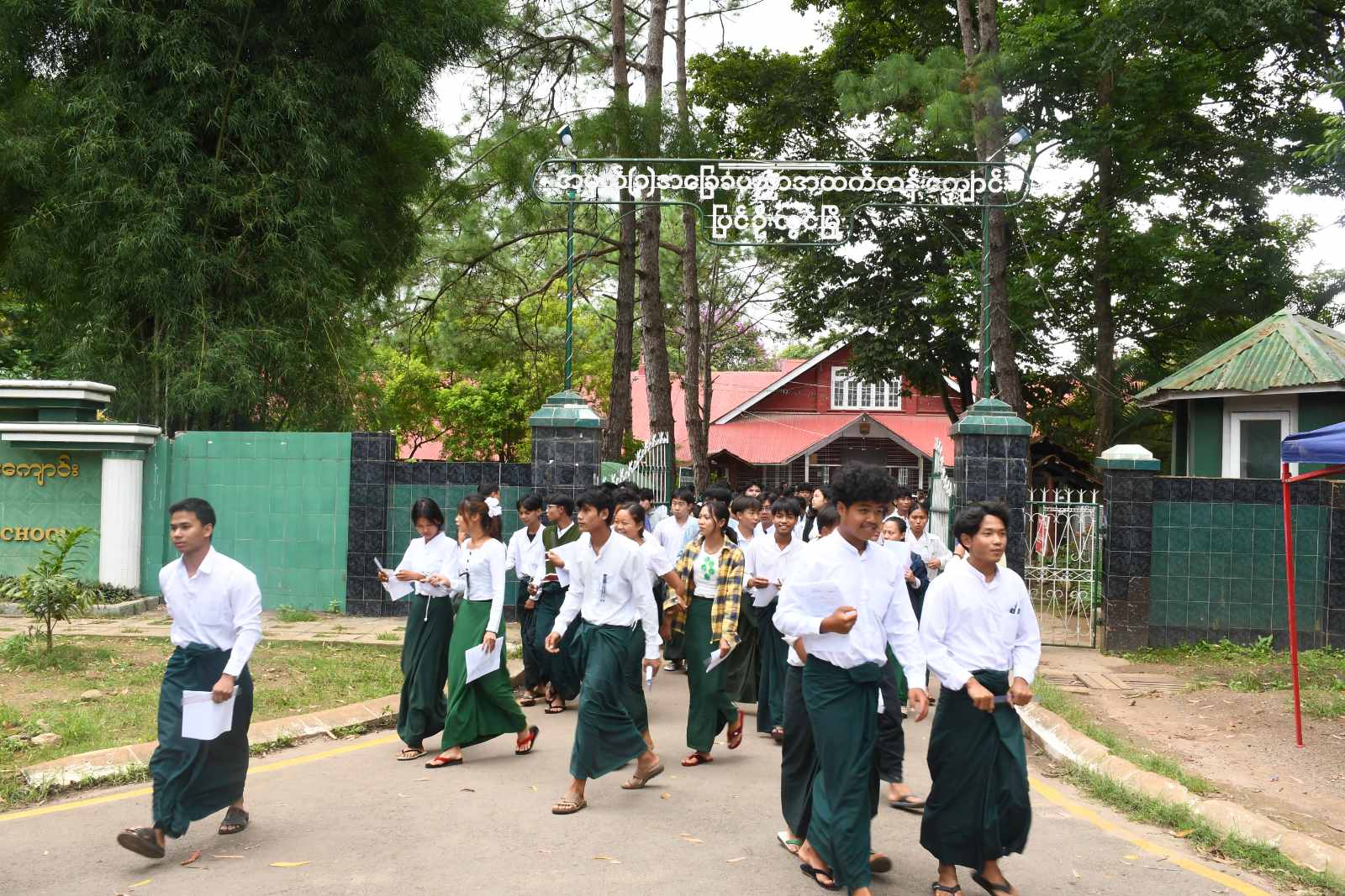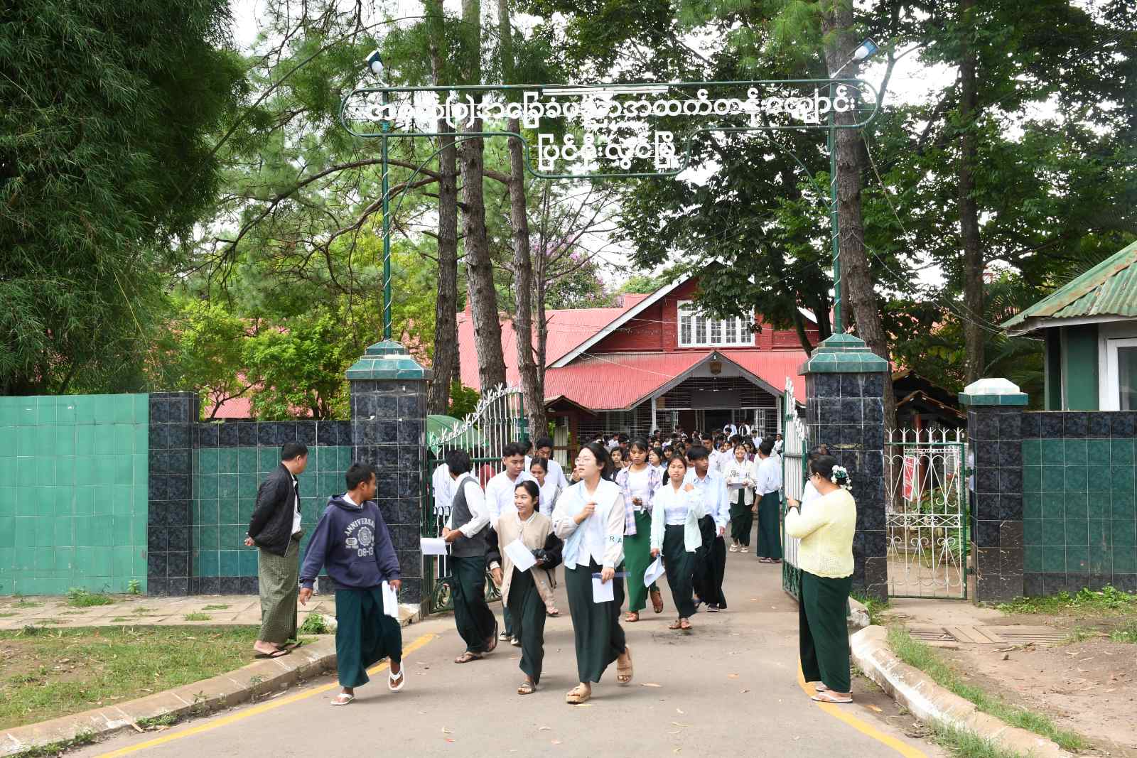 မန္တလေးတိုင်းဒေသကြီး၊ ပြင်ဦးလွင်ခရိုင်၊ ပြင်ဦးလွင်မြို့နယ်၌ ၂၀၂၅ ခုနှစ် တက္ကသိုလ်ဝင်စာမေးပွဲအား စာစစ်ဌာန(၅)ခု ဖွင့်လှစ်၍ ယနေ့နံနက် (၉)နာရီတွင် မြန်မာစာဘာသာအား ကျောင်းသား၊ကျောင်းသူများ အေးချမ်းစွာ ဝင်ရောက်ဖြေဆိုလျက်ရှိရာ ခရိုင်စီမံအုပ်ချုပ်ရေးအဖွဲ့ဥက္ကဋ္ဌနှင့် အဖွဲ့ဝင်များ၊ ခရိုင်ပညာရေးမှူး၊ မြို့နယ်စီမံအုပ်ချုပ်ရေးအဖွဲ့ဥက္ကဋ္ဌနှင့် အဖွဲ့ဝင်တို့မှ သွားရောက်ကြည့်ရှုအားပေးကြသည်။