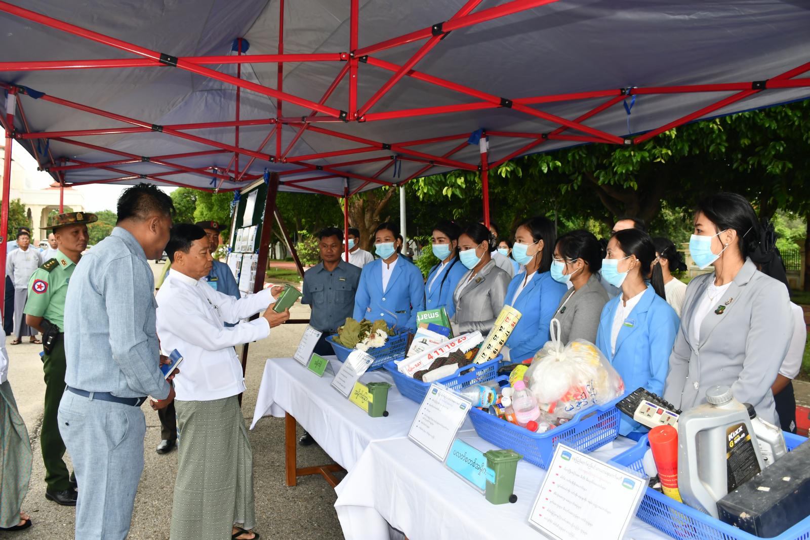 ဆက်လက်၍ နေပြည်တော်ကောင်စီဥက္ကဋ္ဌ ဦးသန်းထွန်းဦးသည် နေပြည်တော် စည်ပင်သာယာရေးကော်မတီ၊ မြို့တော်ခန်းမဝင်းအတွင်း ကျင်းပပြုလုပ်သော အမှိုက်များ စနစ်တကျခွဲခြားစွန့်ပစ်ရေး သရုပ်ပြသပေးခြင်းနှင့် အသိပညာပေးခြင်းလုပ်ငန်းများ ဆောင်ရွက်နေမှုကို သွားရောက်ကြည့်ရှုစစ်ဆေးရာ ပတ်ဝန်းကျင်ထိန်းသိမ်းရေးဦးစီးဌာနနှင့် နေပြည်တော် စည်ပင်သာယာရေးကော်မတီမှ တာဝန်ရှိသူများက အမှိုက်စို၊ အမှိုက်ခြောက်၊ ပလပ်စတစ်အမှိုက်၊ ဘေးအန္တရာယ်ရှိ အမှိုက်များခွဲခြားစွန့်ပစ်ရခြင်း၏ အကျိုးကျေးဇူးများကို ရှင်းလင်းတင်ပြကြပြီး နေပြည်တော်ကောင်စီဥက္ကဋ္ဌက နေပြည်တော်ကို “GREEN CITY ၊ CLEAN CITY ၊ SMART CITY” ဖြစ်စေရေး ကြိုးပမ်းဆောင်ရွက်နေကြောင်း၊ မြို့တော်၏ အင်္ဂါရပ်နှင့်အညီ သန့်ရှင်းသာယာလှပစေရေးအတွက် ဝိုင်းဝန်းကြိုးပမ်းဆောင်ရွက်ကြရန်လိုကြောင်း၊ အမှိုက်များ စနစ်တကျ ခွဲခြားစွန့်ပစ်တတ်စေရန်အတွက် စျေးများ၊ ကျောင်းများ၊ ဌာနဆိုင်ရာရုံးများ၊ ပြည်သူလူထုများနှင့် လူစည်ကားရာနေရာများတွင် အသိပညာပေးခြင်းလုပ်ငန်းများ ဆောင်ရွက်ရန်နှင့် အမှိုက်ပုံးများအား သတ်မှတ်အရောင်အတိုင်း အမှိုက်ပုံးလေးပုံးဖြင့် ထားရှိဆောင်ရွက်သွားရန်လိုကြောင်း၊ နေပြည်တော် သန့်ရှင်းသာယာလှပစေရေးအတွက် အမှိုက်များ စနစ်တကျစွန့်ပစ်ရန်နှင့် မြို့ရွာများအတွင်း ချုံနွယ်ပေါင်းမြက်များ ရှင်းလင်းဆောင်ရွက်သွားရန်လိုကြောင်း၊ တစ်အိမ်ချင်း၊ တစ်ဦးချင်းအလိုက် ကိုယ်တိုင်သန့်ရှင်းရေး ဆောင်ရွက်သည့် အလေ့အထများရှိရန်လိုကြောင်းနှင့် မြို့ရွာများအတွင်း လမ်းဘေးဝဲယာ ရေမြောင်းများတွင် ရေစီးရေလာကောင်းမွန်စေရေးတို့ကို ဆောင်ရွက်ရန် မှာကြားခဲ့သည်။