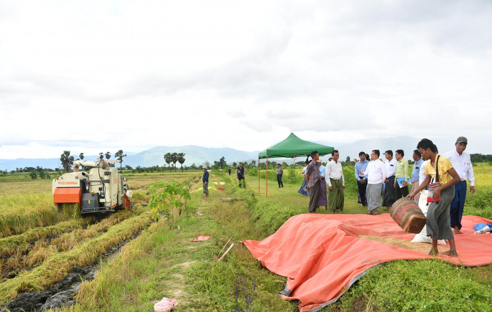 ထို့နောက် နေပြည်တော်ကောင်စီဝင် ဦးဇေယျာလင်းနှင့် တာဝန်ရှိသူများ ကွင်းအမှတ် ၂၀၄၄ ကွင်း၊ တောင်သူဦးမြ၏ နွေစပါးစံကွက်ရိတ်သိမ်းပွဲသို့ ရောက်ရှိကာ မြို့နယ်စိုက်ပျိုးကြီးကြပ်ရေးအဖွဲ့နှင့် တွေ့ဆုံကာ နွေစပါးစိုက်ပျိုးမှု၊ အောင်မြင်မှုများ၊ မိုးစပါးပြန်လည်စိုက်ပျိုးမှုများနှင့် ဆည်ရေအသုံးချမှုများ ဆွေးနွေးဆောင်ရွက်ခဲ့ပြီးနောက် စွမ်းအားမြင့် ရိတ်ခြွေစက်ဖြင့် စံကွက်ရိတ်သိမ်းမှုအား ကြည့်ရှုအားပေးခဲ့ကြောင်း၊ စံကွက်ရိတ်သိမ်းခဲ့ရာတွင် ဒသမ ၁၀ ဧကလျှင် အစို ၁၃ တင်း၊ တစ်ဧကလျှင် ၁၃၀ တင်း ထွက်ရှိခဲ့သည်။