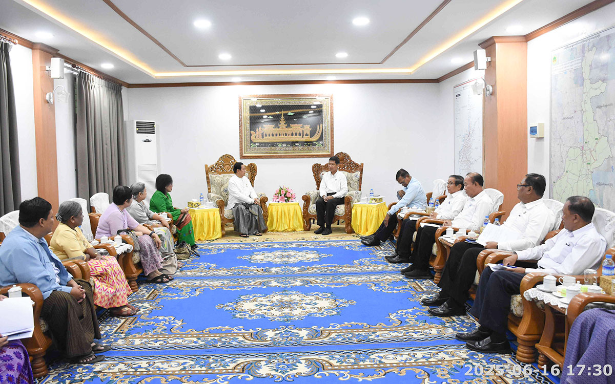 မန္တလေးတိုင်းဒေသကြီးအစိုးရအဖွဲ့ဝန်ကြီးချုပ် ဦးမျိုးအောင်သည် ဇွန်လ (၁၆) ရက်နေ့ ညနေပိုင်းက မြန်မာနိုင်ငံကြက်ခြေနီအသင်းဥက္ကဋ္ဌ ပါမောက္ခဒေါက်တာ မျိုးညွန့်နှင့် အဖွဲ့အား မန္တလေးတိုင်းဒေသကြီးအစိုးရအဖွဲ့ရုံး ဧည့်ခန်းမဆောင်တွင် လက်ခံတွေ့ဆုံခဲ့သည်။