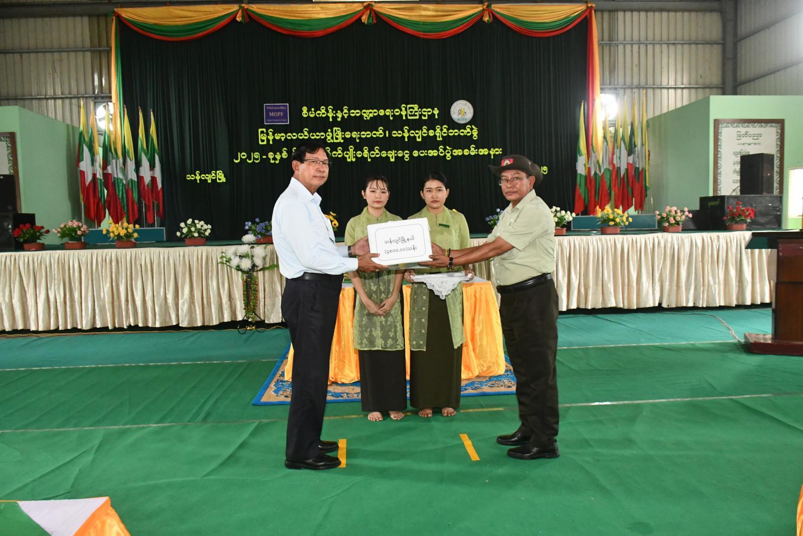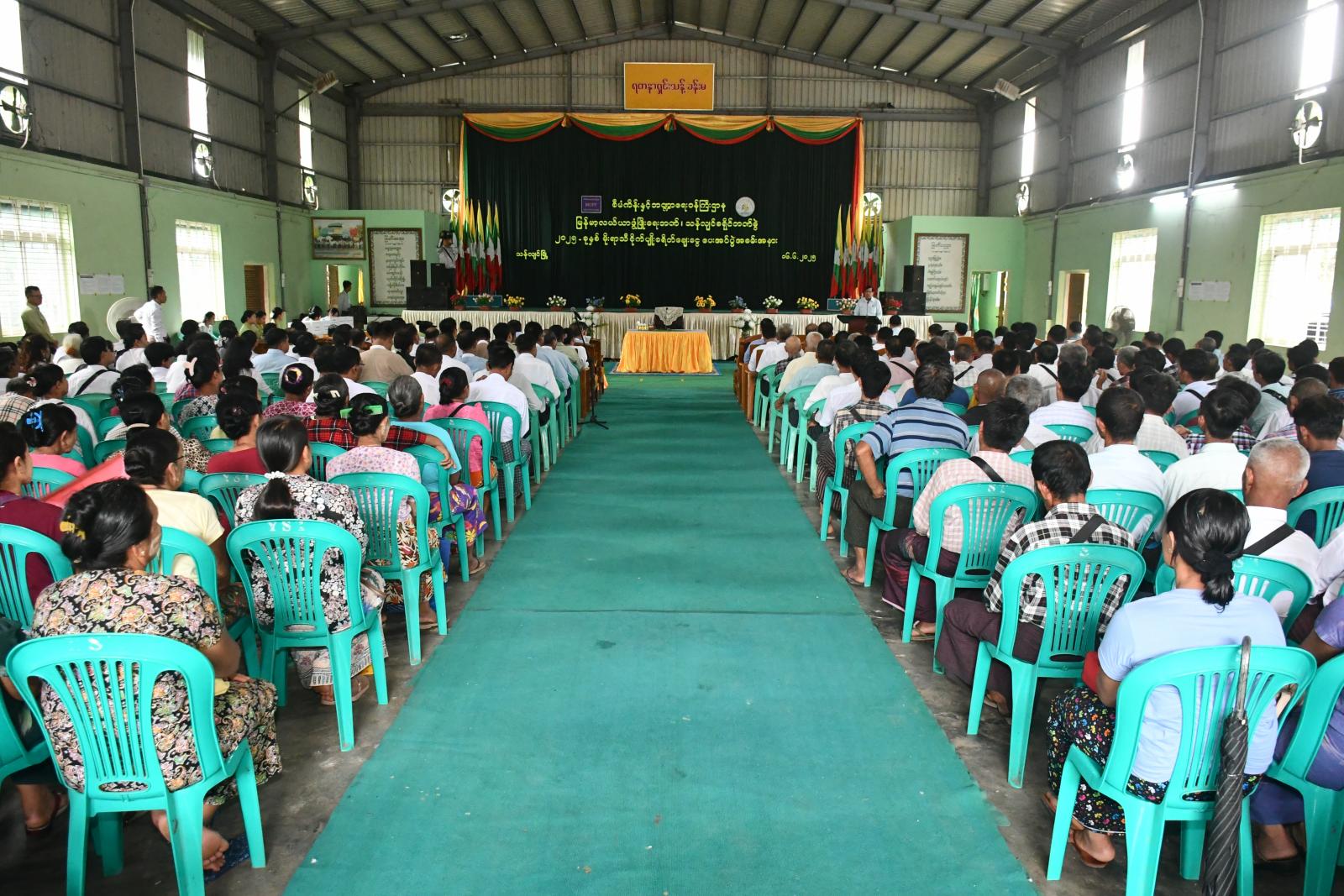 စီမံကိန်းနှင့်ဘဏ္ဍာရေးဝန်ကြီးဌာန၊ မြန်မာ့လယ်ယာဖွံ့ဖြိုးရေးဘဏ်၊ သန်လျင်ခရိုင်ဘဏ်ခွဲ ၂၀၂၅-ခုနှစ် မိုးရာသီစိုက်ပျိုးစရိတ်ချေးငွေပေးအပ်ပွဲအခမ်းအနားကို ယမန်နေ့ နံနက်ပိုင်းက ရန်ကုန်တိုင်း ဒေသကြီး၊ သန်လျင်ခရိုင် ၊ သန်လျင်မြို့နယ်၊ အုတ်ဖိုစုရပ်ကွက်၊ အမှတ်(၁)အခြေခံပညာအထက်တန်းကျောင်း၊ ရတနာရှင်းသန့်ခန်းမတွင် ကျင်းပခဲ့သည်။
