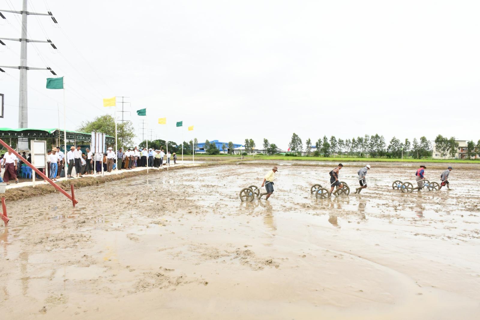 ထို့နောက် တိုင်းဒေသကြီးဝန်ကြီးချုပ်နှင့်အဖွဲ့သည် သန်လျင်မြို့နယ်၊ ဘယက်ကျေးရွာအုပ်စု၊ တောင်သူဦးကျော်ဝင်းနိုင်၏ မိုးစပါးဧက(၁၀၀)စံပြစိုက်ခင်းတွင် မျိုးစေ့ချကိရိယာ(seeder) စိုက်ပျိုးခြင်းကွင်းသရုပ်ပြပွဲသို့ရောက်ရှိပြီး မိုးစပါးဧက(၁၀၀)စံပြစိုက်ခင်း၏ မျိုးစေ့ချကိရိယာ (seeder)ဖြင့် ထွန်ယက်စိုက်ပျိုးနေမှုအားကြည့်ရှုအားပေးပြီး တိုင်းဒေသကြီးဝန်ကြီးချုပ်က seeder ဖြင့်စိုက်ပျိုးနေကြသော တောင်သူများ၏အတွေ့အကြုံများအား ရှင်းလင်းပြောကြားစေကာ လိုအပ် သည်များ ဖြည့်စွက်မှာကြားခဲ့ကြောင်းသိရသည်။