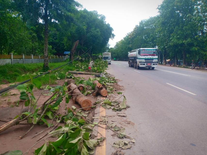 ထိုသို့ဆောင်ရွက်ရာတွင် မှော်ဘီမြို့နယ် စည်ပင်သာယာအမှုဆောင်အရာရှိဦးခင်ဦးနှင့်ဝန်ထမ်းများက မှော်ဘီမြို့အမှတ်(၄)လမ်းဆုံ ရန်ကုန်-ပြည်လမ်းမကြီးတလျောက် ရေနှုတ်မြောင်းများအတွင်း သဲနှုန်းများ၊ အမှိုက်များအား စက်ယန္တယားဖြင့် ရေစီးရေလာ ကောင်းမွန်စေရေး တူးဖော်ဆောင်ရွက်ခဲ့ပြီး ရန်ကုန်-ပြည်လမ်း မိုင်25/4အနီး ၁၅ ရက်နေ့ည ၁၁ နာရီအချိန်ခန့်တွင် လေပြင်းတိုက်ခတ်၍ ကျွန်းပင်လဲကျခဲ့ပြီး လမ်းပေါ်ကျရောက်ခဲ့မှုအား မြို့နယ်မီးသတ်တပ်ဖွဲ့ဝင်များနှင့် တပ်မတော်သားများပူပေါင်း၍ ယာဉ်ကြောပိတ်ဆို့ပြတ်တောက်မှု မရှိစေရေးအတွက် ပူးပေါင်းခုတ်ထွင်ရှင်းလင်းဆောင် ရွက်ခဲ့ကြောင်းသိရသည်။