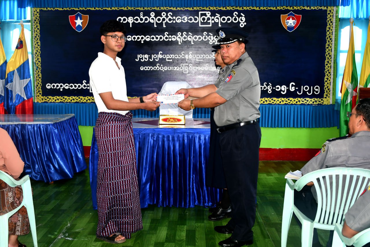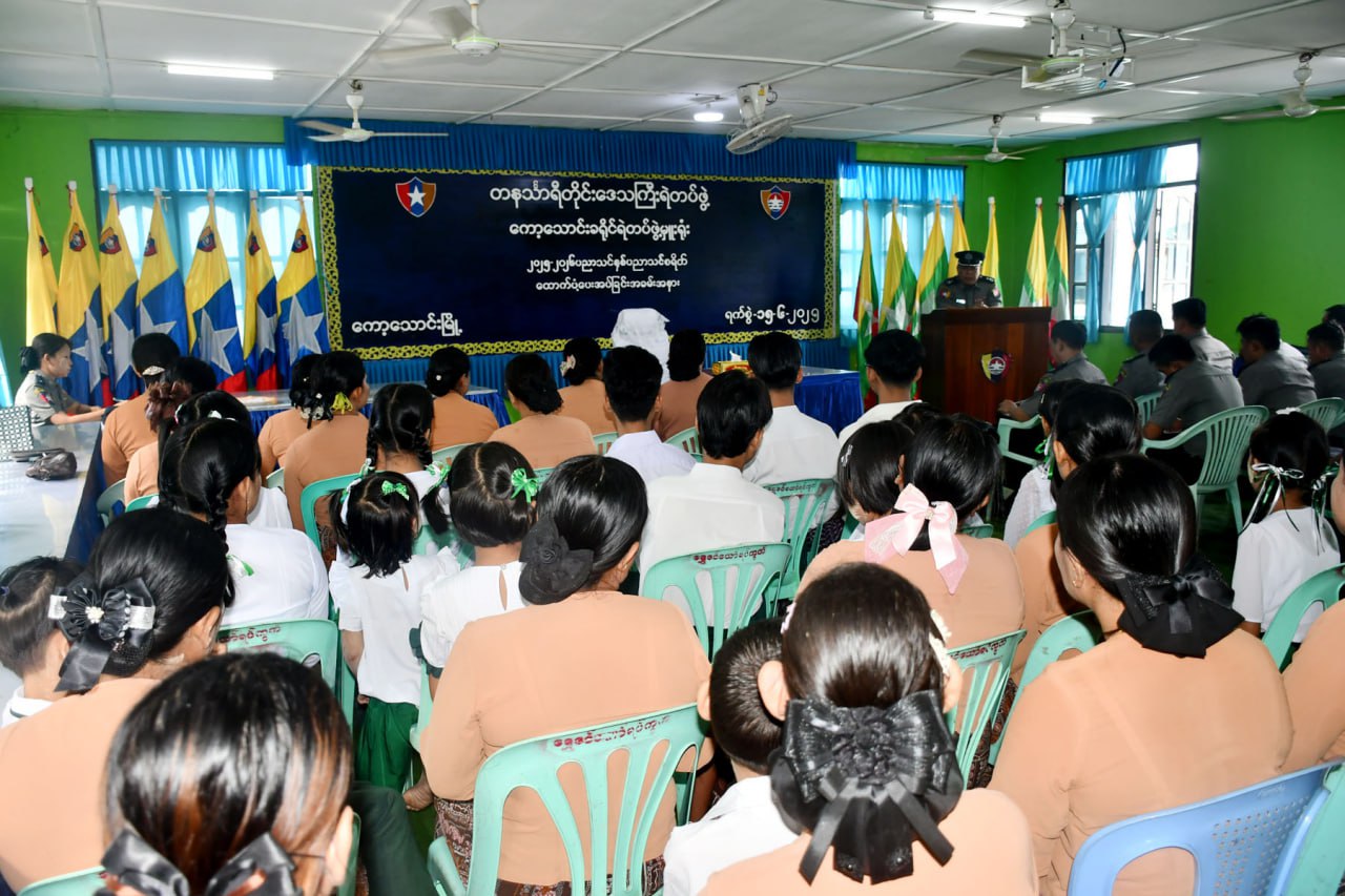 တနင်္သာရီတိုင်းဒေသကြီး၊ ကော့သောင်းခရိုင်ရဲတပ်ဖွဲ့မှ ၂၀၂၅-၂၀၂၆ ခုနှစ်၊ ပညာသင်နှစ်တွင် ရဲတပ်ဖွဲ့မိသားစုမှ မူလတန်း၊အလယ်တန်း၊ အထက်တန်းနှင့် တက္ကသိုလ်တက်ရောက်နေကြသည့် ကျောင်းသား၊ ကျောင်းသူများအား ပညာသင်စရိတ်ထောက်ပံ့ပေးအပ်ခြင်းအခမ်းအနားကို ဇွန်လ ၁၅ ရက်နေ့ နံနက်ပိုင်းက ကော့သောင်းခရိုင်ရဲတပ်ဖွဲ့မှူးရုံး အစည်းအဝေးခန်းမ၌ ကျင်းပခဲ့သည်။