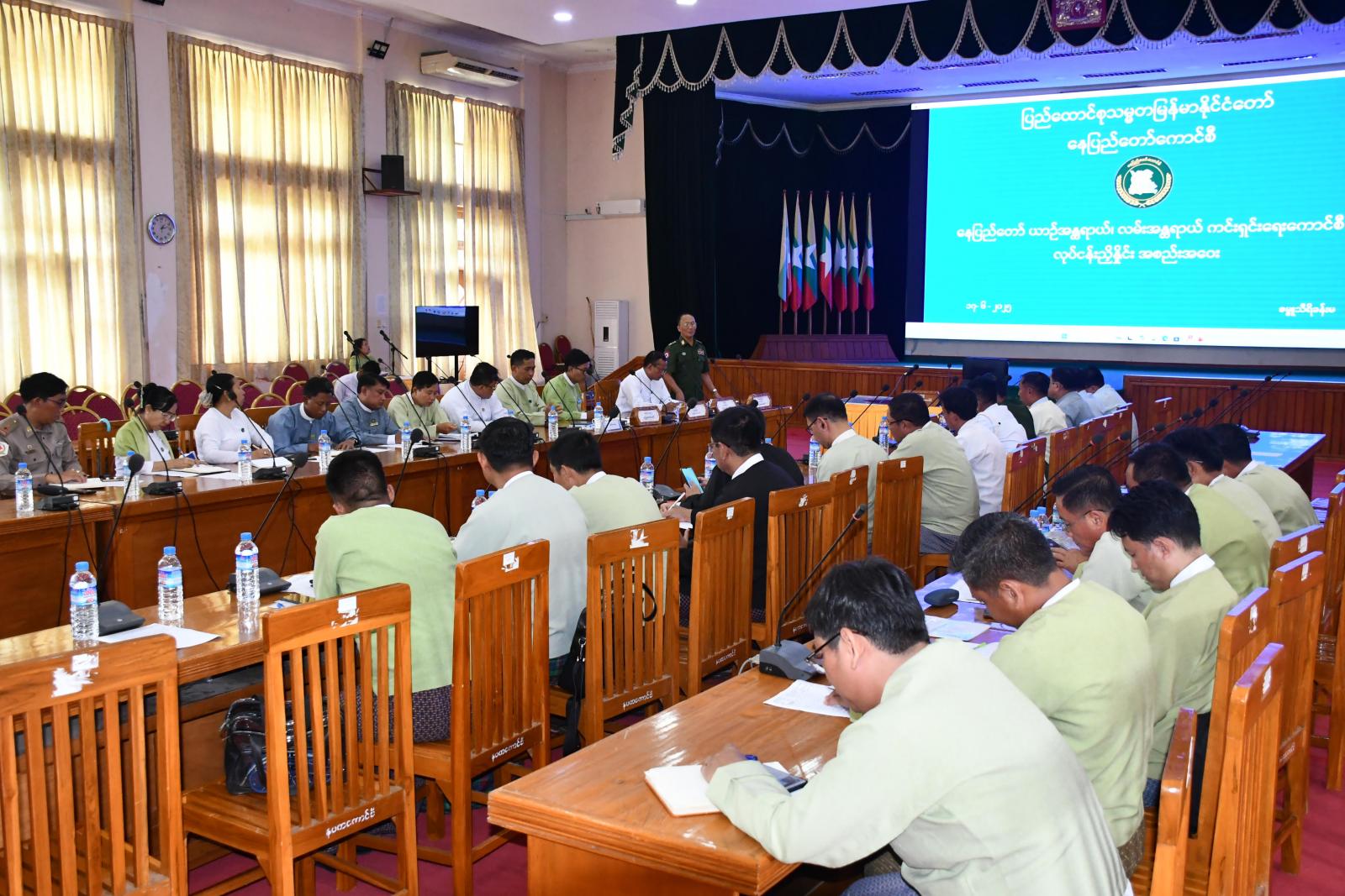 နေပြည်တော်ကောင်စီ ဇမ္ဗူသီရိခန်းမ၌ ကျင်းပပြုလုပ်သည့် နေပြည်တော် ယာဉ်အန္တရာယ်၊ လမ်းအန္တရာယ်ကင်းရှင်းရေးကောင်စီ လုပ်ငန်းညှိနှိုင်းအစည်းအဝေး ယနေ့မွန်းလွဲပိုင်းက ကျင်းပရာ နေပြည်တော်ကောင်စီဝင်များ၊ နေပြည်တော်အဆင့်ဌာနဆိုင်ရာများနှင့် ခရိုင်မြို့နယ်အဆင့် စီမံအုပ်ချုပ်ရေးအဖွဲ့ဥက္ကဋ္ဌများ တက်ရောက်ကြသည်။