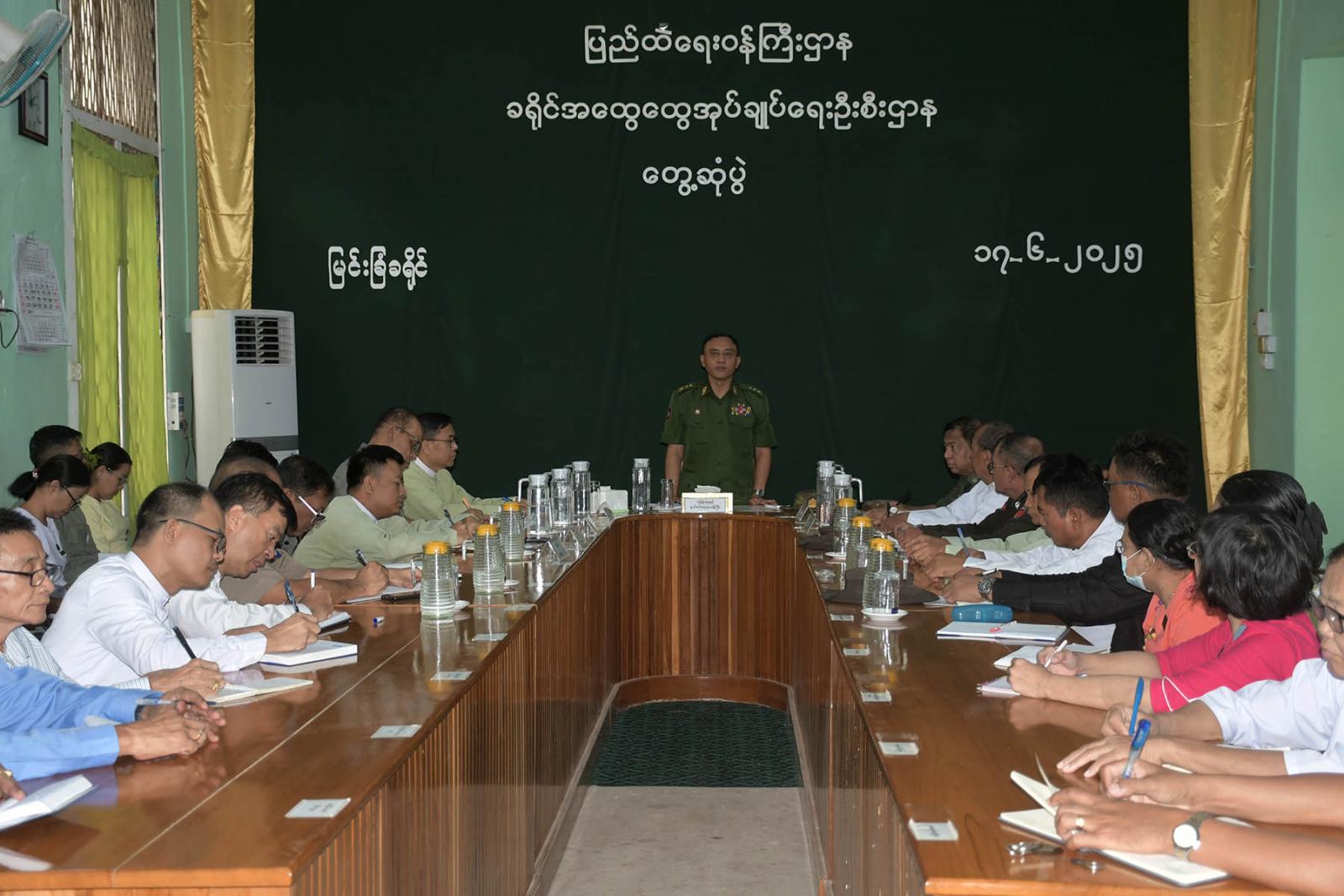 မန္တလေးတိုင်းဒေသကြီးအစိုးရအဖွဲ့ လုံခြုံရေးနှင့်နယ်စပ်ရေးရာဝန်ကြီး ဗိုလ်မှူးကြီး နေလင်းစိုး မြင်းခြံမြို့ ခရိုင်/မြို့နယ်အဆင့် ဌာနဆိုင်ရာများနှင့် တွေ့ဆုံခြင်းကို ယမန်နေ့နေ့လယ် (၂) နာရီအချိန်က ခရိုင်အထွေထွေအုပ်ချုပ်ရေးဦးစီးဌာနအစည်းအဝေးခန်းမတွင် ပြုလုပ်ခဲ့သည်။