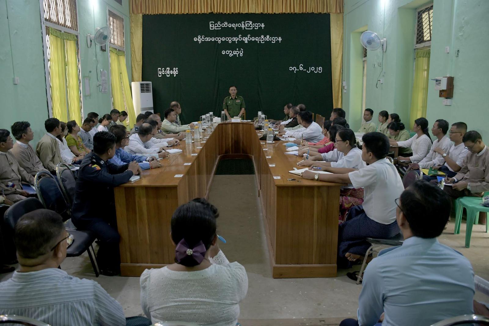 ဆက်လက်၍ တက်ရောက်လာသော ခရိုင်/မြို့နယ်အဆင့်ဌာနဆိုင်ရာများမှ မိမိတို့၏ ဌာနလုပ်ငန်း လုပ်ဆောင်နေမှုများနှင့် အခက်အခဲများကို တင်ပြခဲ့ရာ မန္တလေးတိုင်းဒေသကြီးအစိုးရအဖွဲ့ လုံခြုံရေးနှင့်နယ်စပ်ရေးရာဝန်ကြီး ဗိုလ်မှူးကြီး နေလင်းစိုးက တာဝန်ရှိသူများနှင့် ပေါင်းစပ်ညှိနှိုင်း လမ်းညွှန်မှုပေးခဲ့ကြောင်း သိရသည်။