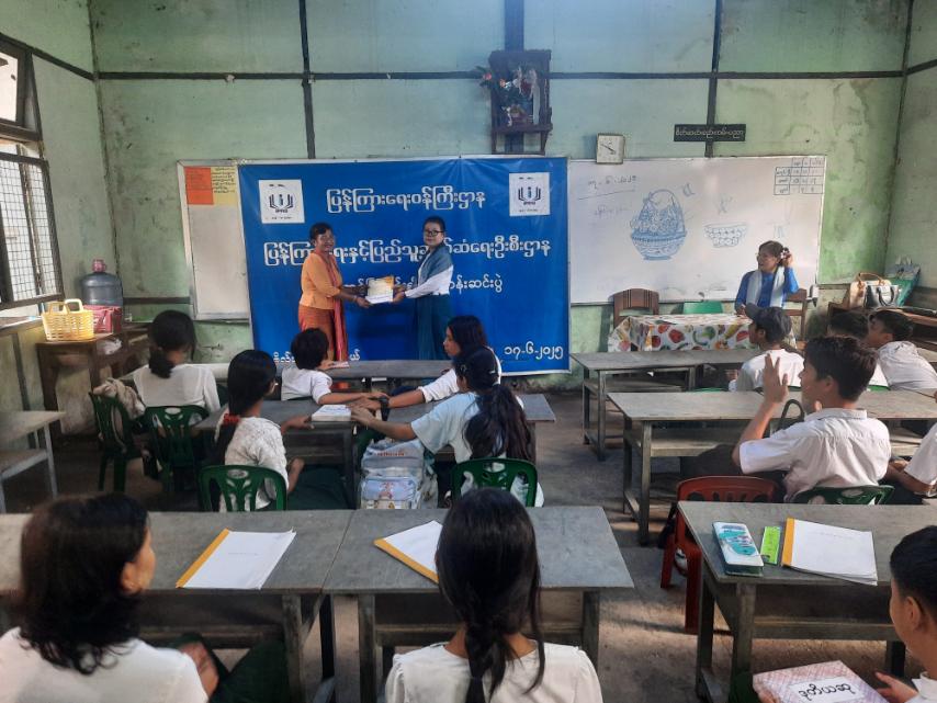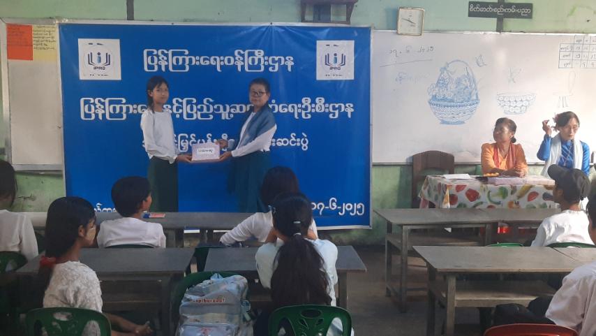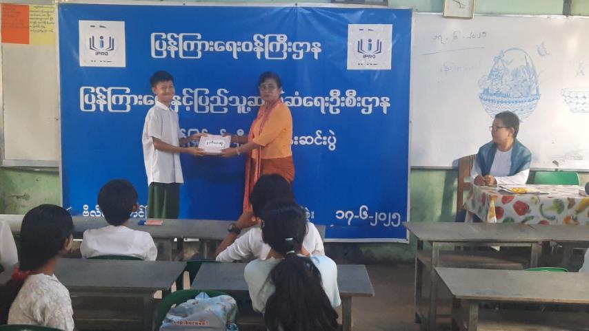 ထို့နောက် ပန်းချီသင်တန်းတွင် ဆုရရှိသော ကျောင်းသား၊ ကျောင်းသူ သုံးဦးဖြစ်သည့် ပထမဆုရရှိသော မပိုးသဒ္ဒါအား မြို့နယ်ပြန်ကြားရေးနှင့်ပြည်သူ့ဆက်ဆံရေးဦးစီးဌာန ဦးစီးအရာရှိ ဒေါ်ခင်ဝင်းကြည်ကလည်းကောင်း၊ ဒုတိယဆုရရှိသည့် မောင်ကျော်နေခန့်အား ပန်းချီဆရာမ မေ(ရန်ကုန်)ကလည်းကောင်း၊ တတိယဆုရရှိသည့် မလှိုင်လှိုင်မိုးအား စာရေးဆရာမ မေမြတ်စန္ဒာကလည်းကောင်း ဆုများအသီးသီးပေးအပ်ခဲ့ကြပြီး ပန်းချီသင်တန်းသင်ကြားပို့ချပေးသော ပန်းချီဆရာမ မေ(ရန်ကုန်)အား ဦးစီးအရာရှိဒေါ်ခင်ဝင်းကြည်က ဂုဏ်ပြုမှတ်တမ်းလွှာနှင့် အမှတ်တရလက်ဆောင်များ ပေးအပ်ခဲ့၍ စုပေါင်းမှတ်တမ်းဓါတ်ပုံများရိုက်ကြပြီး သင်တန်းဆင်းပွဲ အခမ်းအနားပြီးမြောက်ကြောင်း သိရှိရသည်။