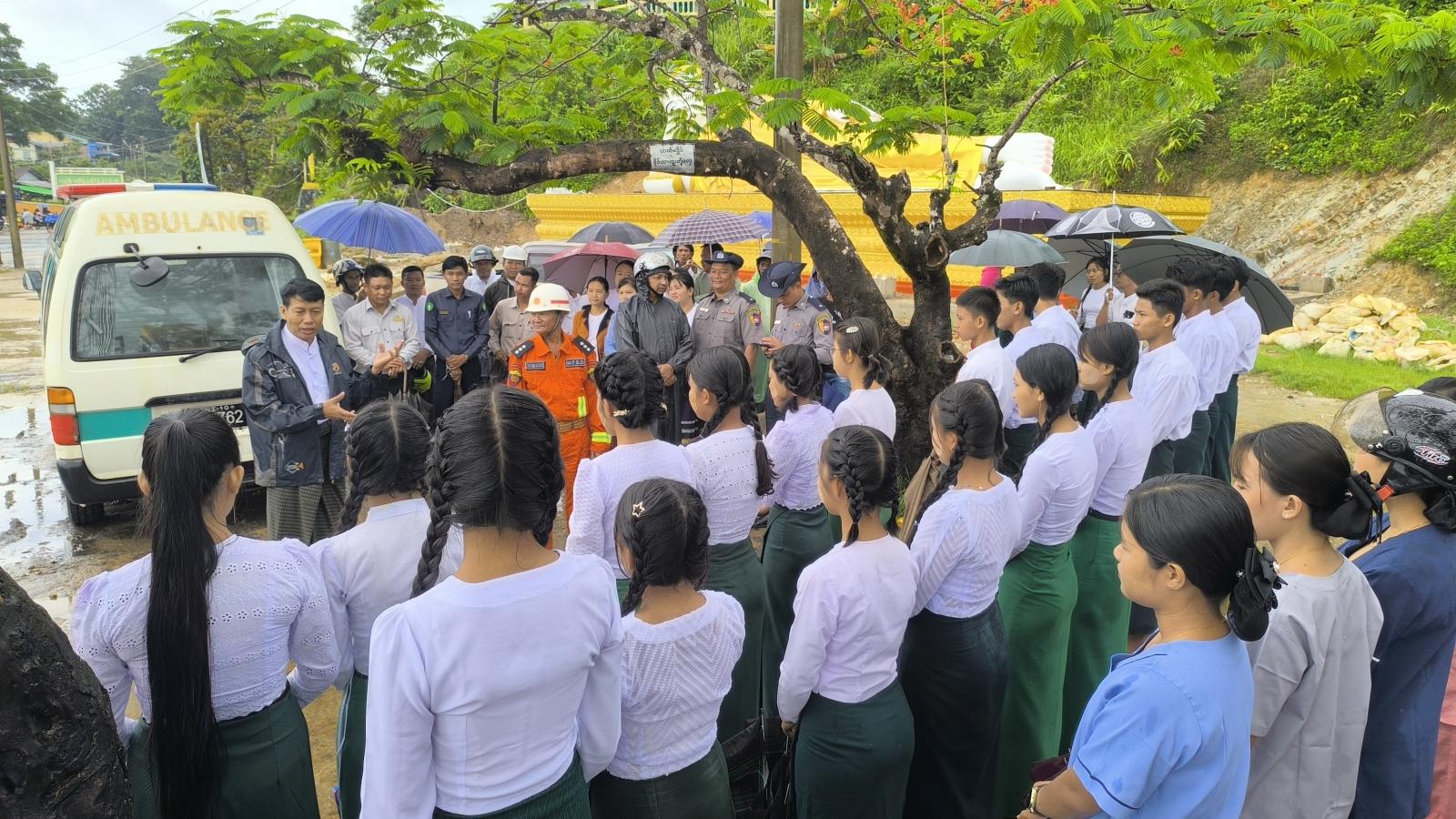 ဇာတ်တိုက်လေ့ကျင့်မှုကို မြို့နယ်သဘာဝဘေးအန္တရာယ်စီမံခန့်ခွဲမှုအဖွဲ့ဥက္ကဋ္ဌ၊ မြို့နယ်စီမံအုပ်ချုပ်ရေးအဖွဲ့ဥက္ကဋ္ဌ ဦးအောင်စန်းဝင်း၊ မြို့နယ်သဘာဝဘေးအန္တရာယ် စီမံခန့်ခွဲမှုအဖွဲ့ ကော်မတီဝင်များ၊ မြို့နယ်ဌာနဆိုင်ရာများ၊ ရပ်မိရပ်ဖများ၊ ပြည်သူများ၊ ဆရာ၊ ဆရာမများနှင့် ကျောင်းသား၊ ကျောင်းသူများ ကြည့်ရှုအားပေးခဲ့ကြကြောင်း သိရသည်။