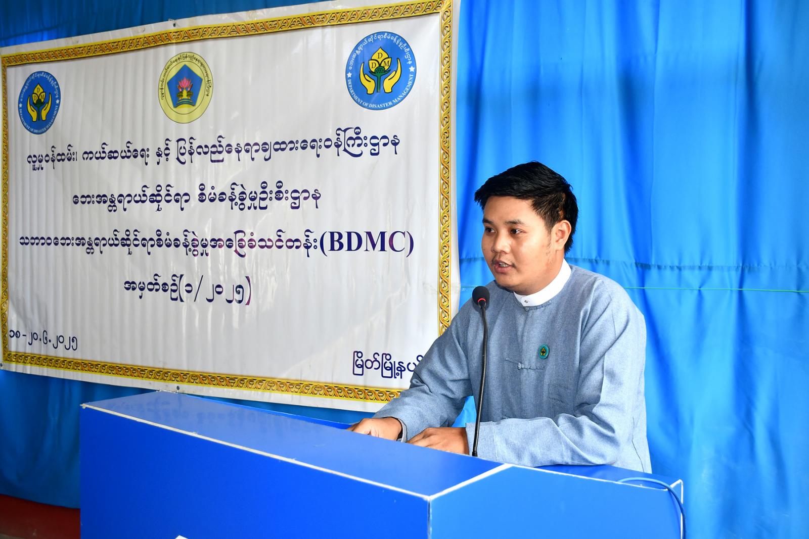 သင်တန်းကို ဒုတိယခရိုင်အုပ်ချုပ်ရေးမှူး ဦးရဲထွဋ်နိုင်က အမှာစကားပြောကြား၍ ဖွင့်လှစ်ပေးပြီး ဘေးအန္တရာယ်ဆိုင်ရာစီမံခန့်ခွဲမှုဦးစီးဌာန ခရိုင်တာဝန်ခံ ဦးကျော်ဇင်လတ်က သင်တန်းဖွင့်လှစ်ရ ခြင်းနှင့်ပတ်သက်၍ ရှင်းလင်းပြောကြား၍ သင်တန်းစတင်ခဲ့သည်။ သင်တန်းကို ဇွန်လ(၁၈) ရက်မှ(၂၀)ရက်အထိ ဖွင့်လှစ်သွားမည်ဖြစ်ပြီး ဌာနဆိုင်ရာများနှင့်လူမှုရေးအသင်းအဖွဲ့များမှ သင်တန်းသား(၃၀)ဦး တက်ရောက်ကြကြောင်း သိရသည်။