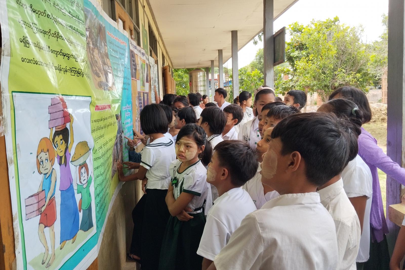 အသိပညာပေးဟောပြောပွဲအပြီးတွင်ကျောင်းသား/ကျောင်းသူများက ကျောက်ဆည်ခရိုင် ပြန်ကြားရေးနှင့်ပြည်သူ့ဆက်ဆံရေးဦးစီးဌာနမှ ပြသထားသည့် စာအုပ်၊စာစောင်များ၊ ကလေးအလုပ်သမားပပျောက်ရေး၊ ယာဉ်စည်းကမ်း၊လမ်းစည်းကမ်းအန္တရာယ်ကင်းရှင်းရေးနှင့် အရွယ်မရောက်သေးသော ကလေး သူငယ်များ စစ်မှုထမ်းခြင်းမှတားဆီးကာကွယ်ရေး အသိပညာပေးနံရံကပ် စိတ်ပါဝင်စားစွာ ကြည့်ရှုခဲ့ကြောင်း သိရသည်။