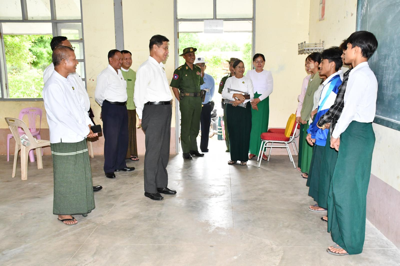 ယနေ့နံနက်ပိုင်းတွင် မန္တလေးတိုင်းဒေသကြီးအစိုးရအဖွဲ့ဝန်ကြီးချုပ် ဦးမျိုးအောင်သည် တိုင်းဒေသကြီးအစိုးရအဖွဲ့ဝင်ဝန်ကြီးများနှင့် တာဝန်ရှိသူများလိုက်ပါ၍ ညောင်ဦးခရိုင် ကျောက်ပန်းတောင်းမြို့ရှိ အခြေခံပညာအထက်တန်းကျောင်း(ပင်မ)နှင့် အခြေခံပညာအထက်တန်းကျောင်း (တိုးချဲ့)စာစစ်ဌာနများသို့ လည်းကောင်း၊ ညောင်ဦးမြို့နယ်ရှိ အခြေခံပညာအထက်တန်းကျောင်း (တောင်ဇင်း)၊ အခြေခံပညာအထက်တန်းကျောင်း(ညောင်ဦး)၊ အခြေခံပညာအထက်တန်း ကျောင်း (ပုဂံ) စာစစ်ဌာန များသို့လည်းကောင်း သွားရောက်၍စာဖြေခန်းများတွင် ကျောင်းသား၊ ကျောင်းသူများ စိတ်အေးချမ်းမြေ့စွာဖြင့် ဖြေဆိုနေမှုများနှင့် အခြေခံပညာအထက်တန်းကျောင်း(ပုဂံ) စာစစ်ဌာနတွင်ကျန်းမာရေး ဆေးပေးခန်း၌ စာမေးပွဲဖြေဆိုနေစဉ် ကျောင်းသူတစ်ဦး သွေးအားနည်းမူးမော်မှုကြောင့် ကျန်းမာရေး ဝန်ထမ်းများနှင့် တာဝန်ရှိသူများက လိုအပ်သည့် ကျန်းမာရေးစောင့်ရှောက်ပေးနေမှုများကို လိုက်လံကြည့်ရှုကာ လိုအပ်သည်များကိုတာဝန်ရှိသူများအား ဖြည့်ဆည်းဆောင်ရွက်ပေးခဲ့ကြောင်း သိရသည်။