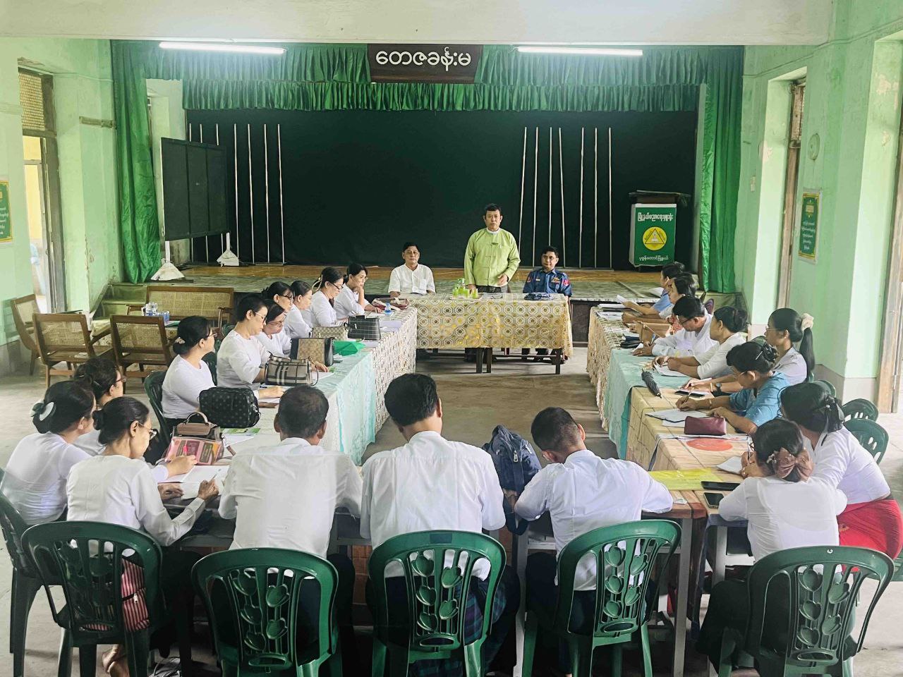 ရန်ကုန်တိုင်းဒေသကြီး၊ ဗိုလ်တထောင်ခရိုင်၊ ပုဇွန်တောင်မြို့နယ် အမှတ်(၁၀)ရပ်ကွက်၊ ဗိုလ်တထောင်ဘုရားလမ်းရှိ မြို့နယ်ပညာရေးမှူးရုံး၊ တေဇခန်းမ၌ ယမန်နေ့နေ့လယ် ၂ နာရီအချိန်က မြို့နယ်အတွင်းရှိ အခြေခံပညာကျောင်းများနှင့်ကိုယ်ပိုင်ကျောင်းများမှ ကျောင်းသား/ကျောင်းသူများ ကျန်းမာရေးနှင့် ကျန်းမာရေးအဆင့်မြှင့် ကျောင်းများ ထူထောင်ရေး ဆွေးနွေးပွဲဆောင်ရွက်ခဲ့သည်။