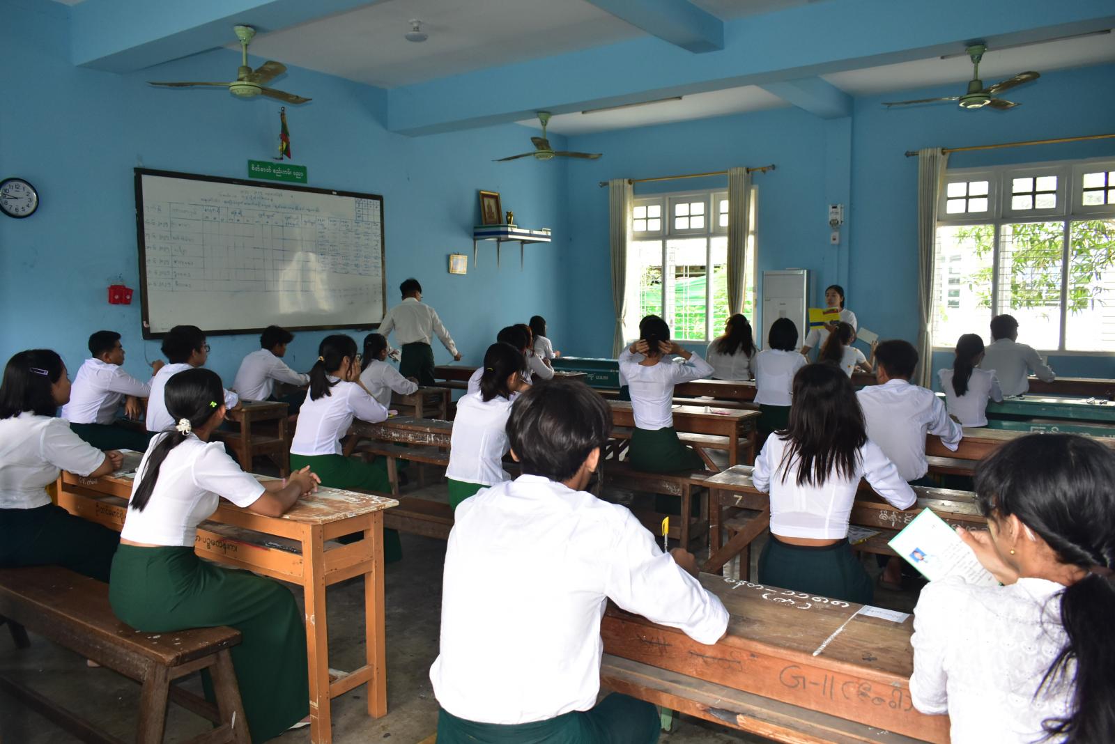 တက္ကသိုလ်ဝင်စာမေးပွဲ ဖြေဆိုရာတွင် မြို့နယ်စီမံအုပ်ချုပ်ရေးအဖွဲ့ဥက္ကဋ္ဌ ဦးထွန်းထွန်းဝင်း၊ မြို့နယ်ရဲတပ်ဖွဲ့မှူး ရဲမှူးမျိုးနိုင်နှင့် ရဲတပ်ဖွဲ့ဝင်များ၊ မြို့နယ်အဆင့်ဌာနဆိုင်ရာအကြီးအကဲများ၊ မြို့နယ်မီးသတ်တပ်ဖွဲ့ဝင်များ၊ ရပ်ကွက်အုပ်ချုပ်ရေးမှူးများ၊ ကျန်းမာရေးအသင်းအဖွဲ့များနှင့်တာဝန်ရှိသူများသည် စာမေးပွဲဖြေဆိုကြမည့် ကျောင်းသား၊ ကျောင်းသူများ စိတ်အေးချမ်းစွာဖြေဆိုနိုင်ရေးအတွက် လိုအပ်သည့် လုံခြုံရေး၊ ကျန်းမာရေးများကို ပူးပေါင်းဆောင်ရွက်ပေးခဲ့ကြောင်း သိရပါသည်။