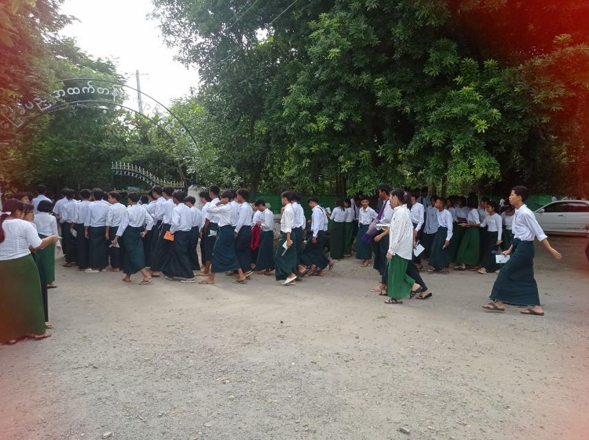၂၀၂၄-၂၀၂၅ ပညာသင်နှစ် တက္ကသိုလ်ဝင်စာမေးပွဲပြန်လည်ကျင်းပ စစ်ဆေးသည့်ကာလအတွင်း ကျောင်းသား/ကျောင်းသူများ စိတ်အေးချမ်းသာစွာဖြေဆိုနိုင်စေရန် ကျောင်းဝန်းအတွင်းနှင့် အပြင်များ၌ မြို့နယ်စီမံအုပ်ချုပ်ရေးအဖွဲ့ဥက္ကဋ္ဌနှင့် တာဝန်ရှိသူများ၊ တပ်မတော်သားများ၊ ရဲတပ်ဖွဲ့ဝင်များ၊ မီးသတ် တပ်ဖွဲ့ဝင်များ၊ ကျန်းမာရေးဌာနမှဝန်ထမ်းများ၊ ဌာနဆိုင်ရာများနှင့် ရပ်ကွက်/ကျေးရွာ အုပ်ချုပ်ရေးမှူးများက အနီးကပ်ကြီးကြပ်စောင့်ရှောက်၍ လိုအပ်သည်များ ဖြည့်ဆည်းဆောင်ရွက်ပေးခဲ့ကြောင်း သိရသည်။