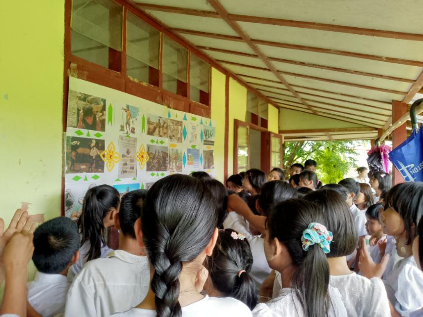 ဆက်လက်၍ ကလေးအလုပ်သမားပပျောက်ရေး အသိပညာပေးနှင့်ပတ်သက်၍ သိသင့်သိထိုက်သည့် အကြောင်းအရာများပါဝင်သည့် နံရံကပ်စာစောင်များအား ပြသရာ ကျောင်းသား/ကျောင်းသူများက စိတ်ပါဝင်စားစွာလေ့လာကြည့်ရှုခဲ့ကြသည်။