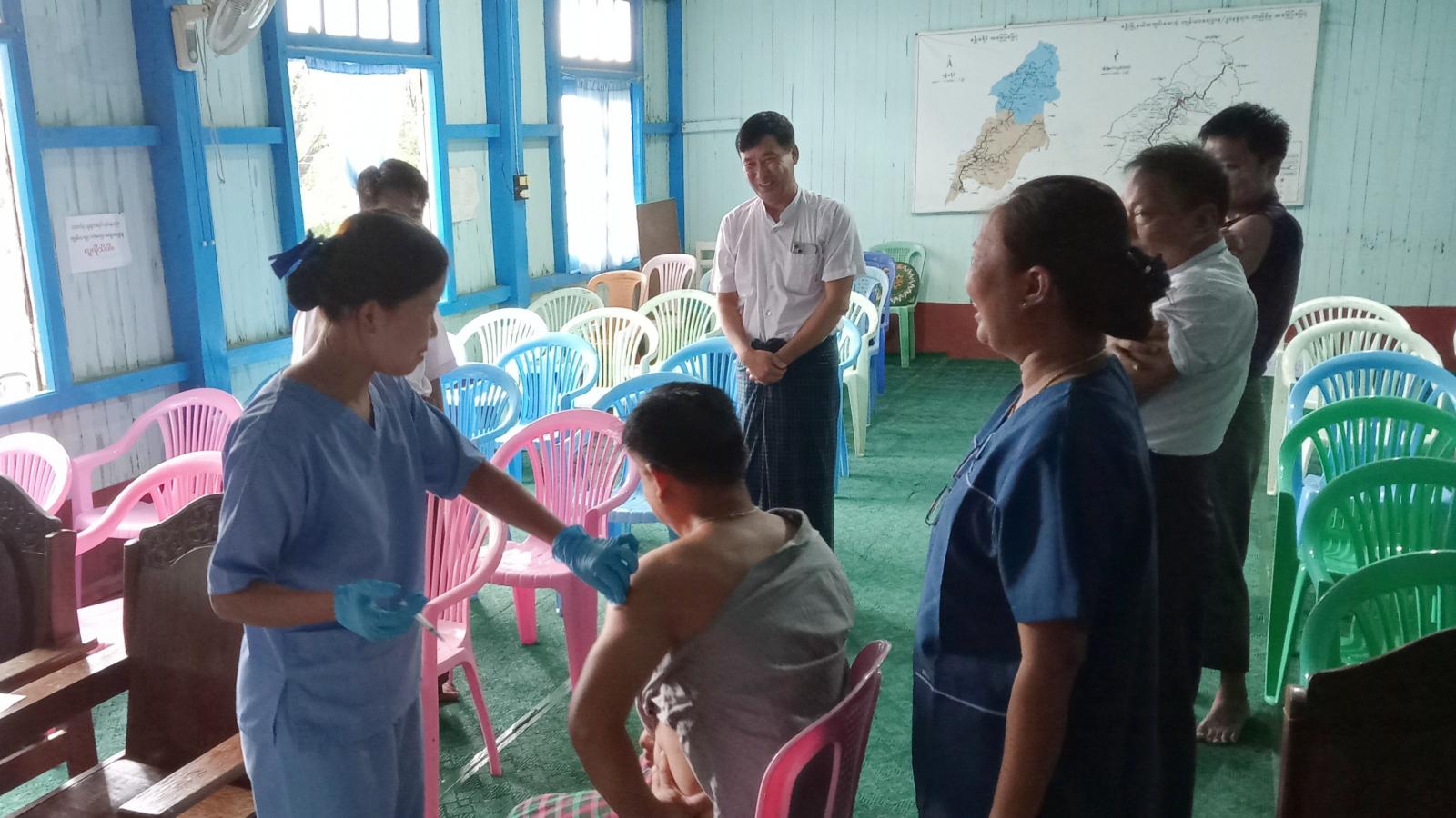အဆိုပါကာကွယ်ဆေးထိုးနှံခြင်းကို ဇွန်လ(၁၉)ရက်နေ့မှ (၂၀)ရက်နေ့အထိ ခရိုင်/မြို့နယ် ဌာနဆိုင်ရာဝန်ထမ်းများကို ထိုးနှံပေးသွားမည်ဖြစ်ပြီး (၂၂)ရက်နေ့တွင် မြသိန်းတန်ဘုရား၌ အသက်ကြီးဘိုးဘွားများကို ဆက်လက်ထိုးနှံပေးသွားမည်ဖြစ်ကြောင်း သိရသည်။