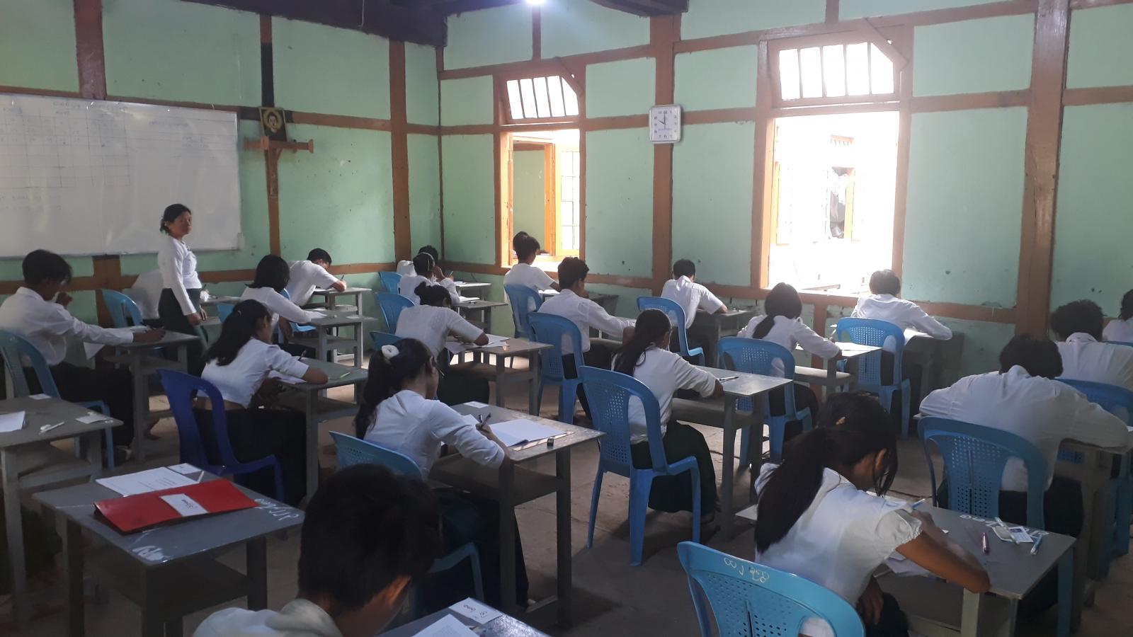 စစ်ကိုင်းတိုင်းဒေသကြီး၊ မုံရွာမြို့ ၌ ၂၀၂၅ ခုနှစ် တက္ကသိုလ်ဝင်စာမေးပွဲကို ဇွန်လ ၁၆ ရက်နေ့မှ စတင်ပြီး မုံရွာမြို့ အမှတ်(၂)အခြေခံပညာအထက်တန်းကျောင်းနှင့် စိုက်ပျိုးမွေးမြူရေးအထက်တန်းကျောင်း(အလုံ)တို့တွင် ပြန်လည်ကျင်းပပေးလျက်ရှိရာ ပဥ္စမ နေ့ ရူပဗေဒဘာသာရပ်နှင့် သမိုင်းဘာသာရပ်တို့ကို Grade-12 ကျောင်းသား၊ ကျောင်းသူများ အေးချမ်းစွာ ပြန်လည်ဖြေဆိုလျက်ရှိသည်။
