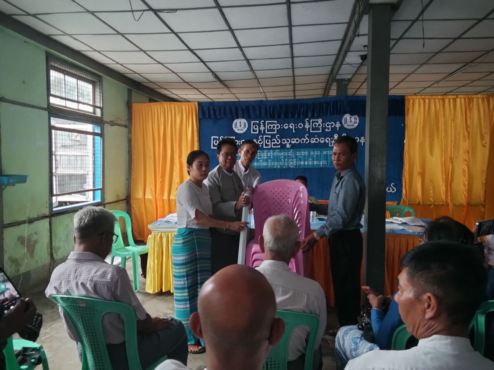 ရန်ကုန်တိုင်းဒေသကြီး၊ ဗိုလ်တထောင်ခရိုင်၊ သာကေတမြို့နယ်၊ပြန်ကြားရေးနှင့် ပြည်သူ့ဆက်ဆံ ရေးဦးစီးဌာနရုံးတွင်ရန်ကုန်တိုင်းဒေသကြီး စာကြည့်တိုက်များ ကြီးကြပ်မှုကော်မတီက လှူဒါန်းသော စာအုပ်စာစောင်များနှင့် ပရိဘောဂပစ္စည်းများ ထပ်ဆင့်ပေးအပ်လှူဒါန်းပွဲနှင့် စာကြည့်တိုက်များ ရှင်သန်ရေးညှိနှိုင်းစည်းဝေးကို ဇွန် ၁၇ ရက်နေ့ နံနက် ၁၀ နာရီက ရန်ကုန်တိုင်းဒေသကြီး၊ သာကေတမြို့နယ် ပြန်ကြားရေးနှင့်ပြည်သူ့ဆက်ဆံရေးဦးစီးဌာန၊ လူထုအခြေပြုဗဟိုဌာန (Community Centre) ခန်းမ၌ ကျင်းပခဲ့သည်။