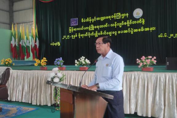 ယင်းနောက် တိုင်းဒေသကြီး ဝန်ကြီးချုပ် ဦးစိုးသိန်းက မိုးစပါးစိုက်ပျိုးစရိတ်ချေးငွေများကို ခရိုင်နှင့်မြို့နယ် စီမံအုပ်ချုပ်ရေးအဖွဲ့ဥက္ကဋ္ဌများအား ပေးအပ်သည်။ ထို့နောက် တိုင်းဒေသကြီးဝန်ကြီးများက တောင်သူများအား စိုက်ပျိုးစရိတ်ချေးငွေများ ပေးအပ်ကြသည်။ ဆက်လက်၍ တိုင်းဒေသကြီးဝန်ကြီးချုပ်သည် ဒေသခံတောင်သူများအား ရင်းရင်းနှီးနှီးတွေ့ဆုံနှုတ်ဆက်၍ မိုးရာသီစိုက်ပျိုးစရိတ်ထုတ်ချေးနေမှုနှင့် တောင်သူများ သီးနှံအာမခံထားရှိမှုတို့ကို လှည့်လည်ကြည့်ရှုအားပေးကြသည်။ ယင်းနောက် အ.ထ.က (၁) ကျောင်ဝန်းအတွင်း အမှိုက်ပုံးများ ထားရှိမှုကို ကြည့်ရှုစစ်ဆေး၍ လိုအပ်သည်များကို တာဝန်ရှိသူများအား ဆွေးနွေးမှာကြားသည်။