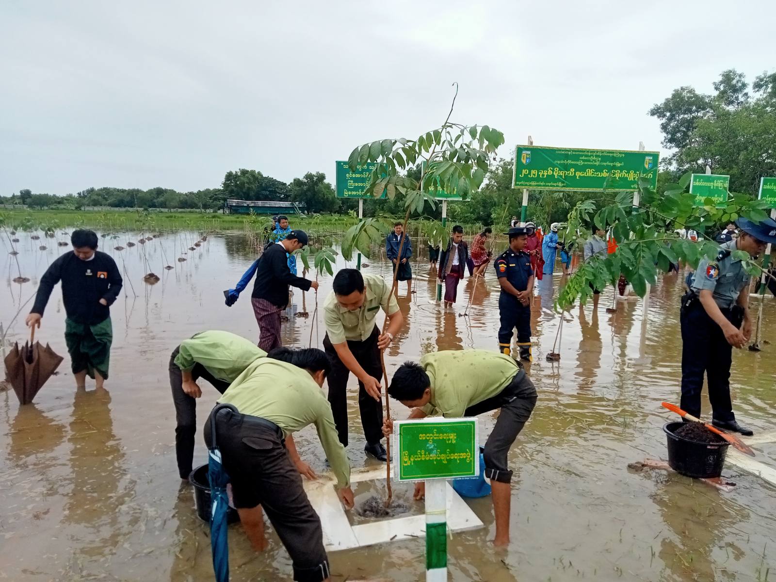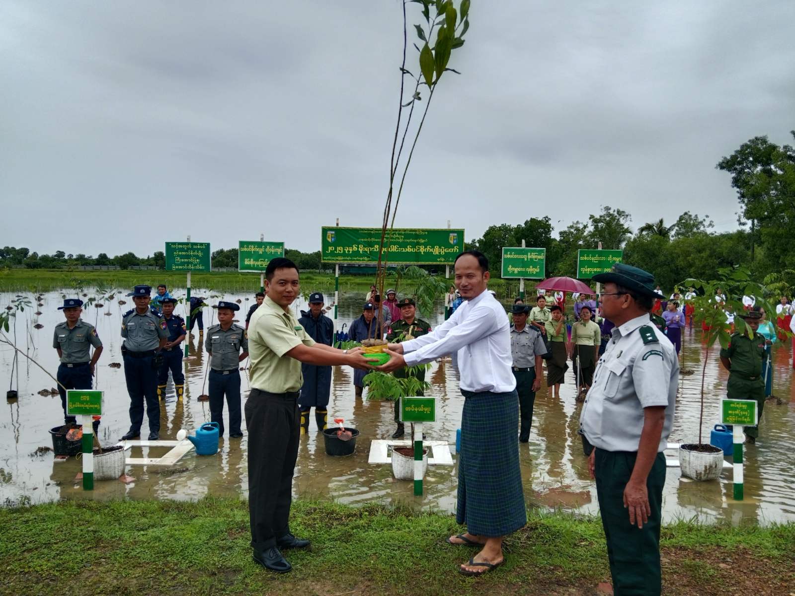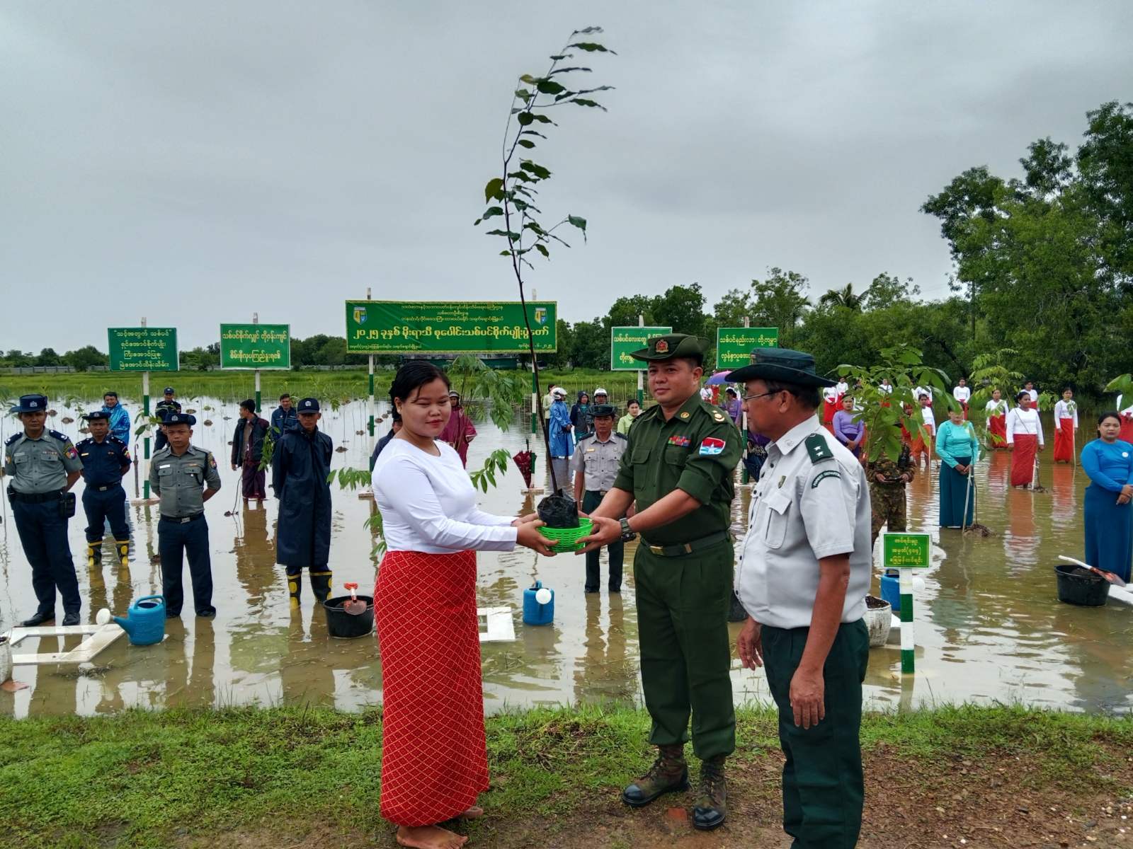 ရှေးဦးစွာ အခမ်းအနားတွင် သရက်ချောင်းမြို့နယ်၊ တပ်နယ်မှူး ဒုတိယဗိုလ်မှူးကြီး စိုင်းသူရဋ္ဌေးမှပျိုးပင်များပေးအပ်ရာ တပ်နယ်မိသားစုဝင်များက ပျိုးပင်များ လက်ခံရယူခြင်း၊ မြို့နယ်အထွေထွေအုပ်ချုပ်ရေးဦးစီးဌာနမှခေတ္တဥက္ကဋ္ဌ ဦးကျော်ဇင်မှ ပျိုးပင်များပေးအပ်ရာ ပညာရေးဌာနနှင့် ကျေးရွာ/ရပ်ကွက် အုပ်ချုပ်ရေးမှူးများက ပျိုးပင်များလက်ခံရယူခြင်း၊ မြို့နယ်ရဲတပ်ဖွဲ့မှူး ရဲမှူးခင်မောင်လွင်မှ ပျိုးပင်များပေးအပ်ရာ မြို့နယ်အမျိုးသမီးရေးရာအဖွဲ့၊ မိခင်နှင့်ကလေးစောင့်ရှောက်ရေးအသင်းအဖွဲ့ဝင်များက လက်ခံရယူခဲ့ပြီးနောက် တက်ရောက် လာသူများမှ သတ်မှတ်နေရာအသီးသီးတို့၌ ကံ့ကော်၊ ခရေ၊ စိန်ပန်း၊ ပျဉ်းကတိုး၊ ပိတောက်၊ ပျဉ်းမ၊ မဟော်ဂနီ၊ မန်ဂျန်ရှား၊ မယ်ဇလီ၊ သစ်ရှို၊ သင်္ကန်း ပျိုးပင်ပေါင်း ၅၀၀ ပင်အား စနစ်တကျ စုပေါင်းစိုက်ပျိုးပေးခဲ့ကြသည်။