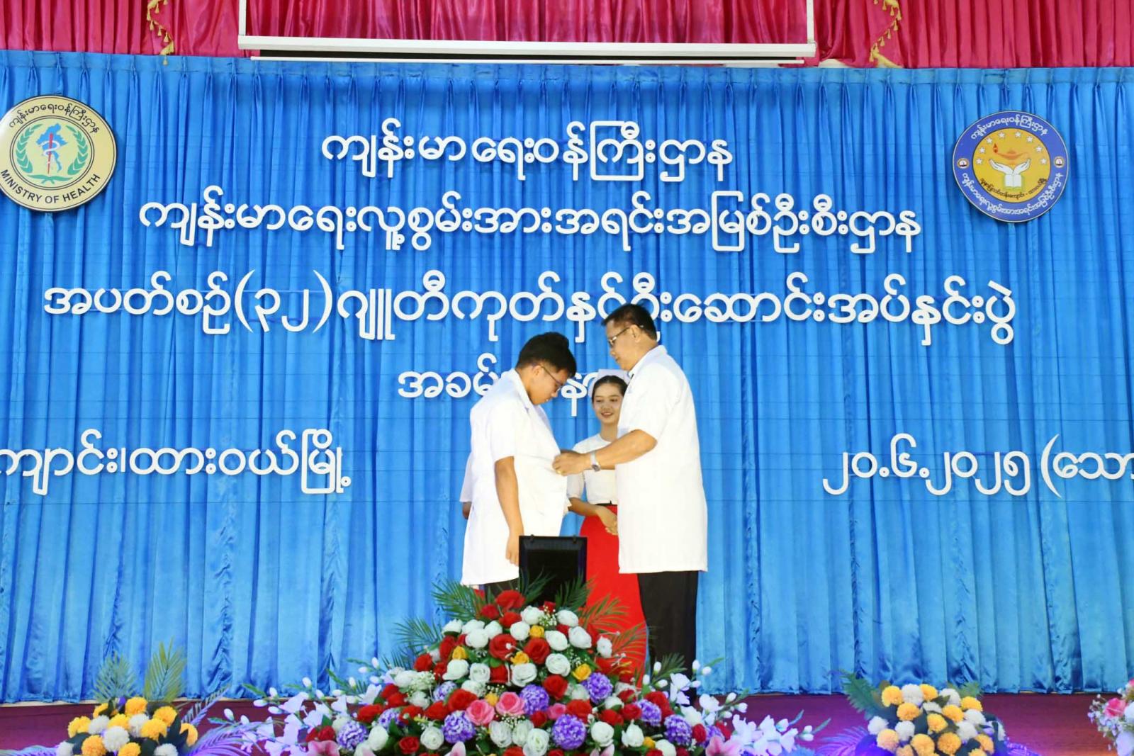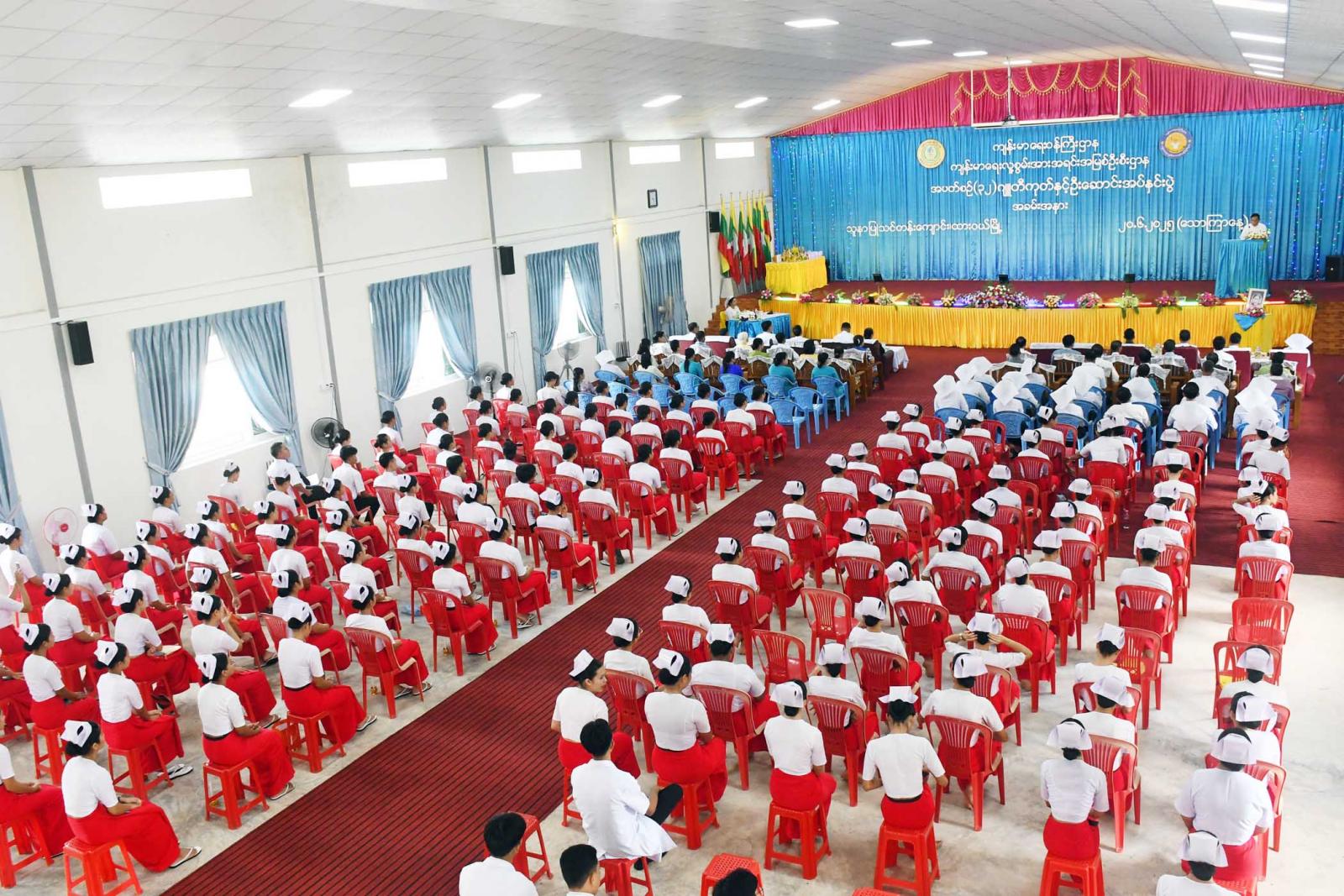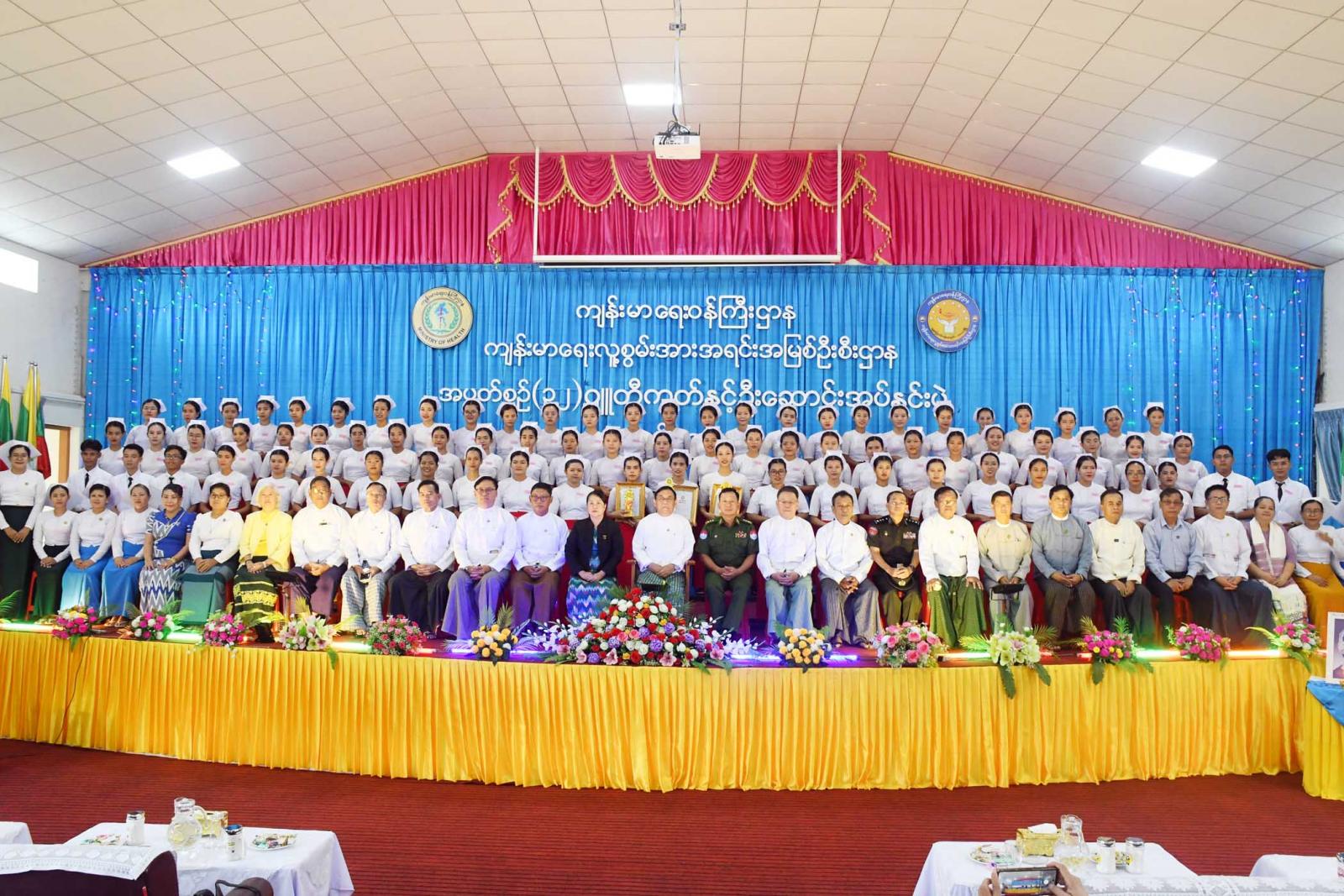အခမ်းအနားတွင် တိုင်းဒေသကြီးဝန်ကြီးချုပ် ဦးမြတ်ကိုက မြန်မာနိုင်ငံတွင် ကျန်းမာရေးစောင့်ရှောက်မှုပေးရာ၌ အလွန်အရေးပါသော သူနာပြုဆရာ/ဆရာမများအဖြစ် မွေးထုတ်မည့် သူနာပြုဆရာ/ဆရာမ လောင်းလျာများအတွက် အရေးကြီးလှသည့် ဂုဏ်ယူဖွယ်အခမ်းအနားတစ်ခုလည်းဖြစ်ကြောင်း၊ သူနာပြုဆိုသည် ကျန်းမာရေးကဏ္ဍတွင် များစွာအရေးပါသော လုပ်ငန်းတစ်ရပ်ဖြစ်ကြောင်း၊ ကရုဏာကြီးမားပြီး ကိုယ်ကျိုးစွန့်အနစ်နာခံတတ်ခြင်း၊ စိတ်ထားမွန်မြတ်ခြင်း၊ အပင်ပန်းဆင်းရဲခံနိုင်ခြင်း စသည့်အင်္ဂါရပ်များနှင့် ထူးကဲစွာပြည့်စုံသူများသာ ထမ်းဆောင်နိုင်သည့် တာဝန်မျိုးဖြစ်ကြောင်း၊ သူနာပြုနှင့် သားဖွားပညာရေးကိုလည်း ဒီပလိုမာသင်တန်းမှ သူနာပြုသိပ္ပံဘွဲ့၊ သူနာပြုမဟာသိပ္ပံ ဘွဲ့လွန်သင်တန်းများ၊ သူနာပြုပါရဂူဘွဲ့လွန်သင်တန်းများကို ပြည်တွင်းရော ပြည်ပမှာပါ လေ့လာသင်ယူနိုင်ကြောင်း၊ သင်ကြားရေးအပိုင်းမှာ နိုင်ငံတော်၏ ကျန်းမာရေးစောင့်ရှောက်မှု လိုအပ်ချက်နှင့်အညီ အရည်အသွေးပြည့်ဝသည့် သူနာပြုသားဖွားများ မွေးထုတ်ပေးနိုင်ရေးသည် အရေးကြီးကြောင်း၊ နိုင်ငံတော်က အရည်အသွေးပြည့်မီသော ကျန်းမာရေးစောင့်ရှောက်မှုနှင့် အဆင့်အတန်းမြင့်မားစေရေး ဆောင်ရွက်ရာတွင် ပြည်သူများအားထားရသည့် အရည်အချင်းရှိသော ဘက်စုံတော်သည့် သူနာပြုကောင်းများ လေ့ကျင့်မွေးထုတ်ပေးရမှာဖြစ်ကြောင်း၊ မိမိတို့၏ အသက်မွေးဝမ်းကြောင်းအတတ်ပညာရပ်ဖြစ်သော သူနာပြုပညာရပ်ကိုမွန်မြတ်သော လုပ်ငန်းအဖြစ် ရေရှည်တိုးတက်အောင်မြင်စေရန်အတွက် အထူးအလေးထား ကြိုးစားဆောင်ရွက်ကြပါရန်နှင့် ဖလော့ရင့်နိုက်တင်ဂေးကဲ့သို့ သူနာပြုများစွာ ပေါ်ထွန်းလာစေလိုပါကြောင်း ပြောကြားသည်။