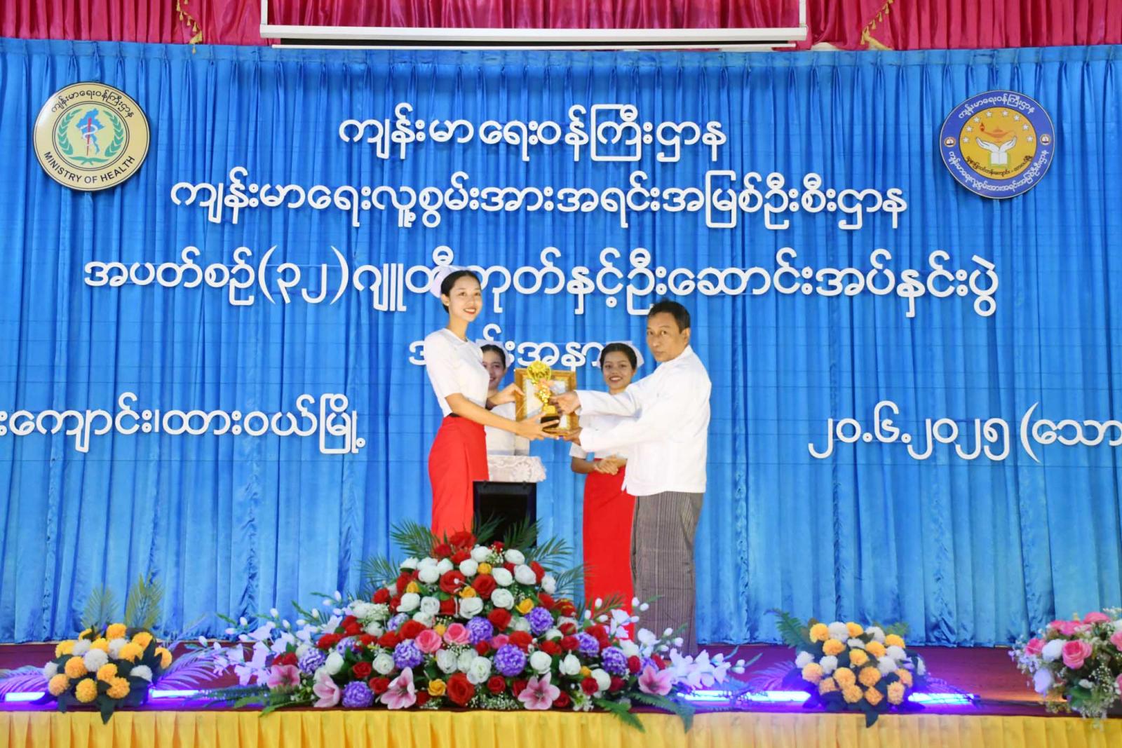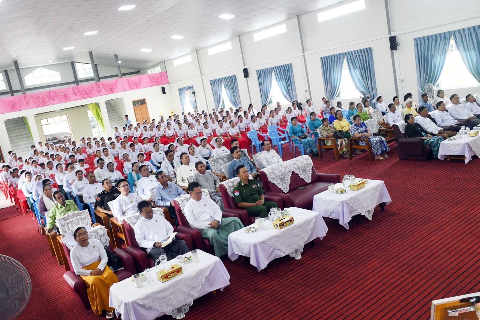 ဆက်လက်၍ ကျောင်းအုပ်ကြီး၊ ကျောင်းအုပ်(စီမံ)နှင့် ကျောင်းအုပ်(သင်ကြား)တို့ထံမှ လက်ဆင့်ကမ်းဆီမီးတိုင်များကို ထွန်းညှိ၍ သူနာပြုသစ္စာအဓိဋ္ဌာန်ရွတ်ဆိုပြီး တိုင်းဒေသကြီးဝန်ကြီးချုပ်နှင့် တာဝန်ရှိသူများက ထားဝယ်သူနာပြုသင်တန်းကျောင်းအတွက် ငွေကျပ် (၁၅) သိန်းနှင့် ပထမ၊ ဒုတိယ၊ တတိယ ပညာရည်ချွန်ဆုရရှိသူများအား ဆုချီးမြှင့်သည်။