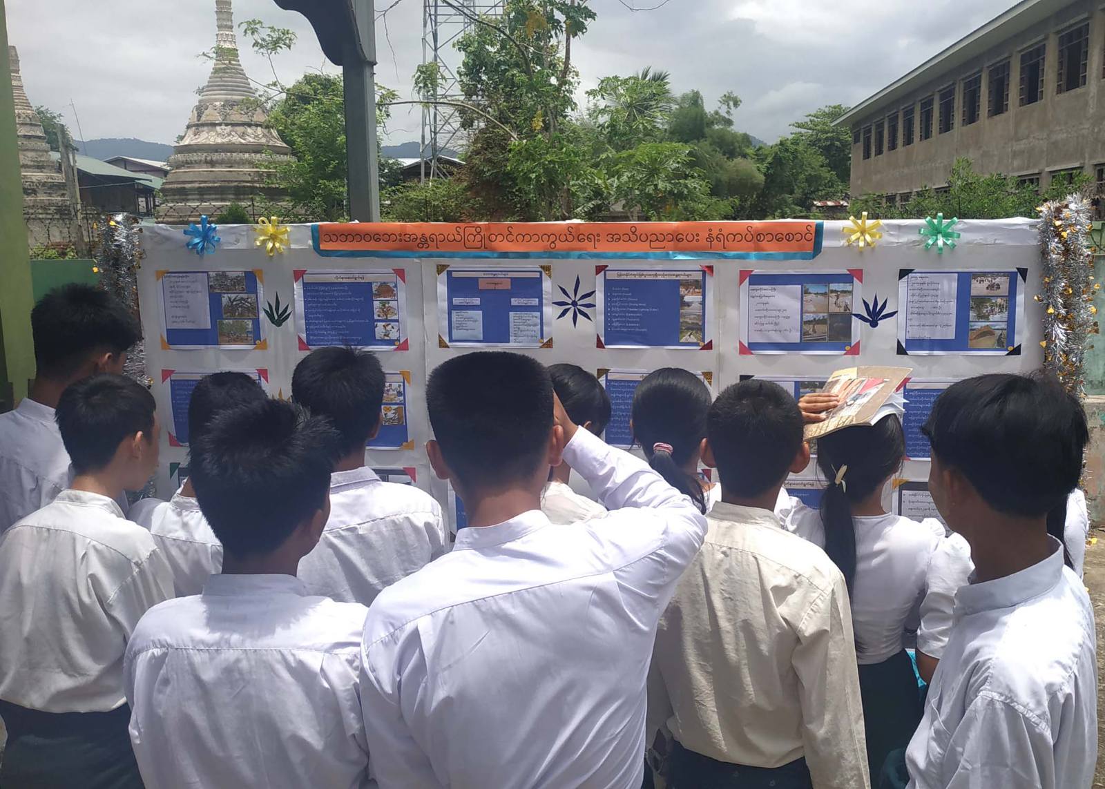 ထို့နောက် အသိပညာပေးဟောပြောပွဲသို့ တက်ရောက်လာကြသော ဌာနဆိုင်ရာတာဝန်ရှိသူများ၊ ဆရာ၊ ဆရာမများနှင့် ကျောင်းသား၊ ကျောင်းသူများ စုစုပေါင်း ဦးရေ(၃၀၀) ကျော်တို့က မြို့နယ်ပြန်ကြားရေးနှင့်ပြည်သူ့ဆက်ဆံရေးဦးစီးဌာနမှပြသထားသော သဘာဝဘေးအန္တရာယ် ကြိုတင်ကာကွယ်ရေးဆိုင်ရာ အသိ ပညာပေးနံရံကပ်စာစောင်များကို စိတ်ပါဝင်စားစွာကြည့်ရှုလေ့လာခဲ့ကြကြောင်း သိရသည်။
