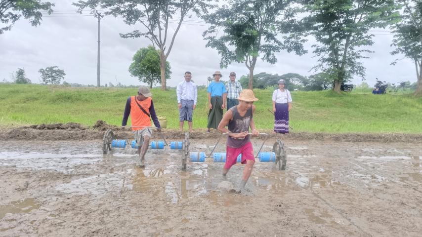 ဦးစွာ မြို့နယ်စိုက်ပျိုးရေးဦးစီးဌာနမှတာဝန်ရှိသူများက တိုက်ရိုက်မျိုးစေ့ချကိရိယာ(Seeder)ဖြင့် စိုက်ပျိုးခြင်းဖြင့်ရရှိမည့်အကျိုးကျေးဇူးများအားပြောကြားခဲ့ပြီး တောင်သူဒေါ်ဘဲလာနှင့် ဒေါ်ပြုံးနွဲ့၏ လယ်မြေများပေါ်တွင် တိုက်ရိုက်မျိုးစေ့ချကိရိယာ(Seeder) ဖြင့်စိုက်ပျိုးခြင်းအား ကြည့်ရှု့အားပေးခဲ့သည်။