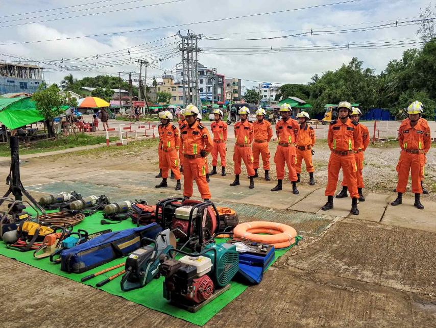 ထိုသို့သရုပ်ပြဇာတ်တိုက် လေ့ကျင့်ရာတွင် မြို့နယ်မီးသတ်ဦးစီးဌာနမှ ဦးစီးအရာရှိ ဦးအောင်သူ ဦးဆောင်သော မီးသတ်တပ်ဖွဲ့ဝင်တို့က မီးဘေး၊ လေဘေး၊ ငလျင်ဘေးနှင့် သဘာဝဘေးအန္တရာယ်များ ကျရောက်လာပါက ရှာဖွေကယ်ဆယ်ရေးလုပ်ငန်းများ ကူညီဆောင်ရွက်နိုင်ရေးအတွက် သရုပ်ပြဇာတ်တိုက်လေ့ကျင့်ခြင်းတို့ ဆောင်ရွက်လျက်ရှိ သည်။ ထို့အပြင် မီးသတ်တပ်ဖွဲ့ဝင်များသည် မီးဘေးအန္တရာယ်များ ကြုံတွေ့လာပါက သင့်(၄) သင့်၊ မြန်(၄) မြန်စနစ်ဖြင့် ကြိုတင်ပြင်ဆင်ထားရှိပြီး တာဝန်ရှိများနှင့်ပူးပေါင်း၍ ကူညီကယ်ဆယ်ရေးလုပ်ငန်းများ ဆောင်ရွက်နိုင်ရေး လေ့ကျင့်လျက်ရှိကြောင်း သိရသည်။