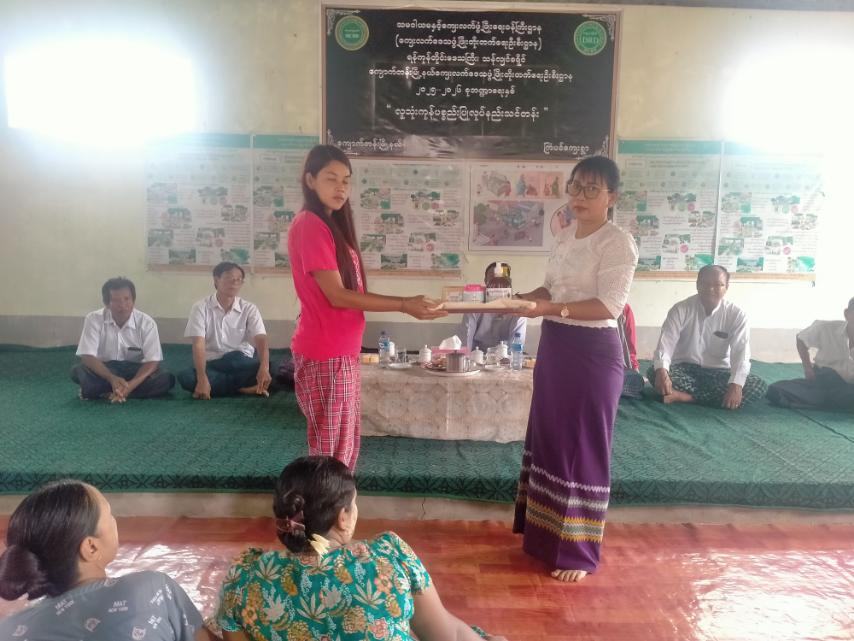 ဆက်လက်၍ ကျောက်တန်းမြို့နယ်၊ ကျေးလက်ဒေသဖွံ့ဖြိုးတိုးတက်ရေးဦးစီးဌာန၊ ဦးစီးမှူး ဦးထွန်း၀င်းလတ်က သင်တန်းမှရရှိသောအတတ်ပညာများအား အကျိုးရှိစွာဆက်လက်အသုံးချလုပ်ကိုင်ဆောင်ရွက်သွားရန်နိုင်ရန် လည်းပြောကြားခဲ့ပါသည်။ ထို့နောက် ကြံပင်ကျေးရွာအုပ်ချုပ်ရေးမှူး၊ ရပ်မိရပ်ဖများက ကျေးဇူးတင်စကားပြောကြားပြီး သင်တန်းသူများအားလက်တွေ့ထုတ်လုပ်ခဲ့သောထုတ်ကုန်ပစ္စည်းများအား လက်ဆောင်ပေးအပ်ခဲ့သည်။