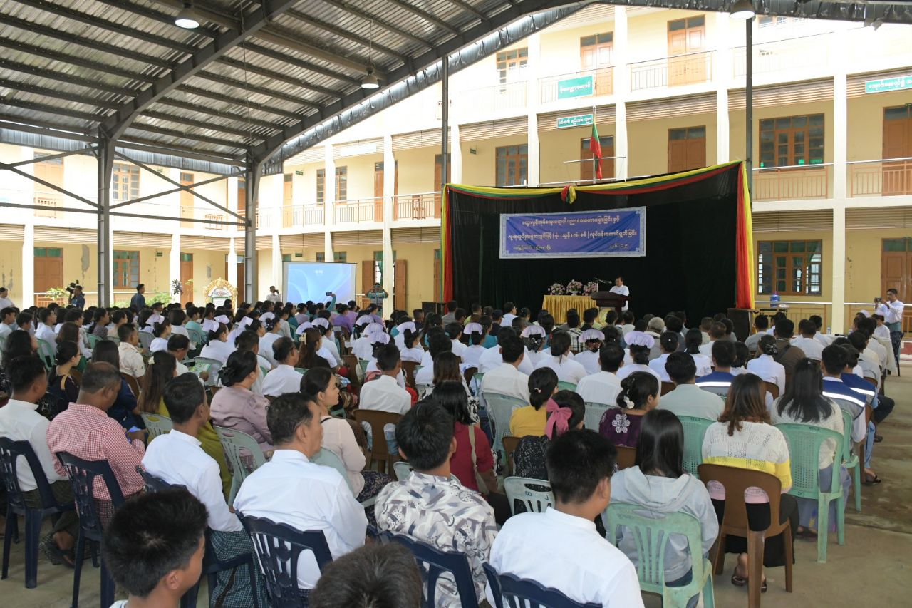 ကျောင်းသူများနှင့် ပြည်သူလူထုများ တက်ရောက်ကြသည်။