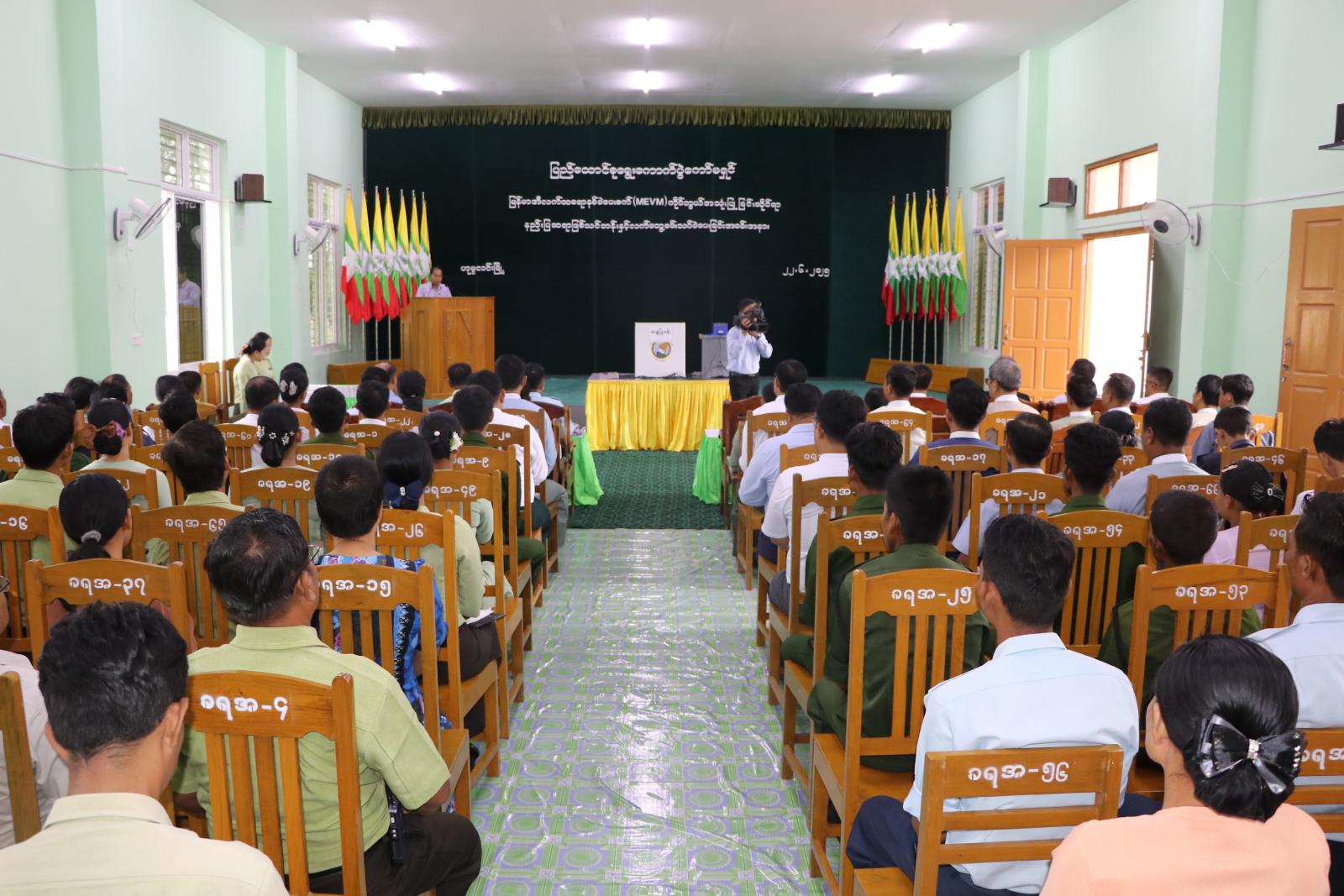 ဦးစွာ တိုင်းဒေသကြီးဝန်ကြီးချုပ် ဦးမြတ်ကျော်က မြန်မာအီလက်ထရောနစ်မဲပေးစက် MEVM အသုံးပြု၍ မဲပေးခြင်းဖြင့် ပယ်မဲဖြစ်ပေါ်မှုမရှိခြင်း၊ မဲရေတွက်ရာတွင် အချိန်ကြန့်ကြာမှုများနှင့် ကိန်းဂဏန်းလွဲမှားမှုများအားကျော်လွှားပြီး အချိန်တိုအတွင်း တိကျမှန်ကန်သည့်ရလဒ်များ ထုတ်ဆောင်ရွက်နိုင်မည်ဖြစ်ပါ၍ အငြင်းပွားဖွယ်ဖြစ်ရပ်များ မဲမသမာမှုများမရှိနိုင်တော့ဘဲ ပိုမိုပွင့်လင်းမြင်သာသည့် တရားမျှတပြီး သိက္ခာရှိသည့် ရွေးကောက်ပွဲတစ်ရပ်ဖြစ်ပေါ်လာမည် ဖြစ်ပါကြောင်း၊ သင်တန်းသား/ သင်တန်းသူများအနေဖြင့် MEVM မဲပေးစက်အား သေချာစွာ လိုက်နာမှတ်သားပြီး သိရှိတတ်ကျွမ်းကာ ရွေးကောက်ပွဲကြီး၌ မဲပေးစက်ကိုင်တွယ် ကြီးကြပ်မည့်သူများ၊ မဲရုံမှူး၊ ဒုတိယမဲရုံမှူးများအား ဆင့်ပွားသင်တန်းများ ပြန်လည်ပို့ချရာတွင် ရှင်းရှင်းလင်းလင်းနှင့် ထိရောက်စွာပို့ချသွားကြရန်လိုအပ်ပါကြောင်း ပြောကြားသည်။