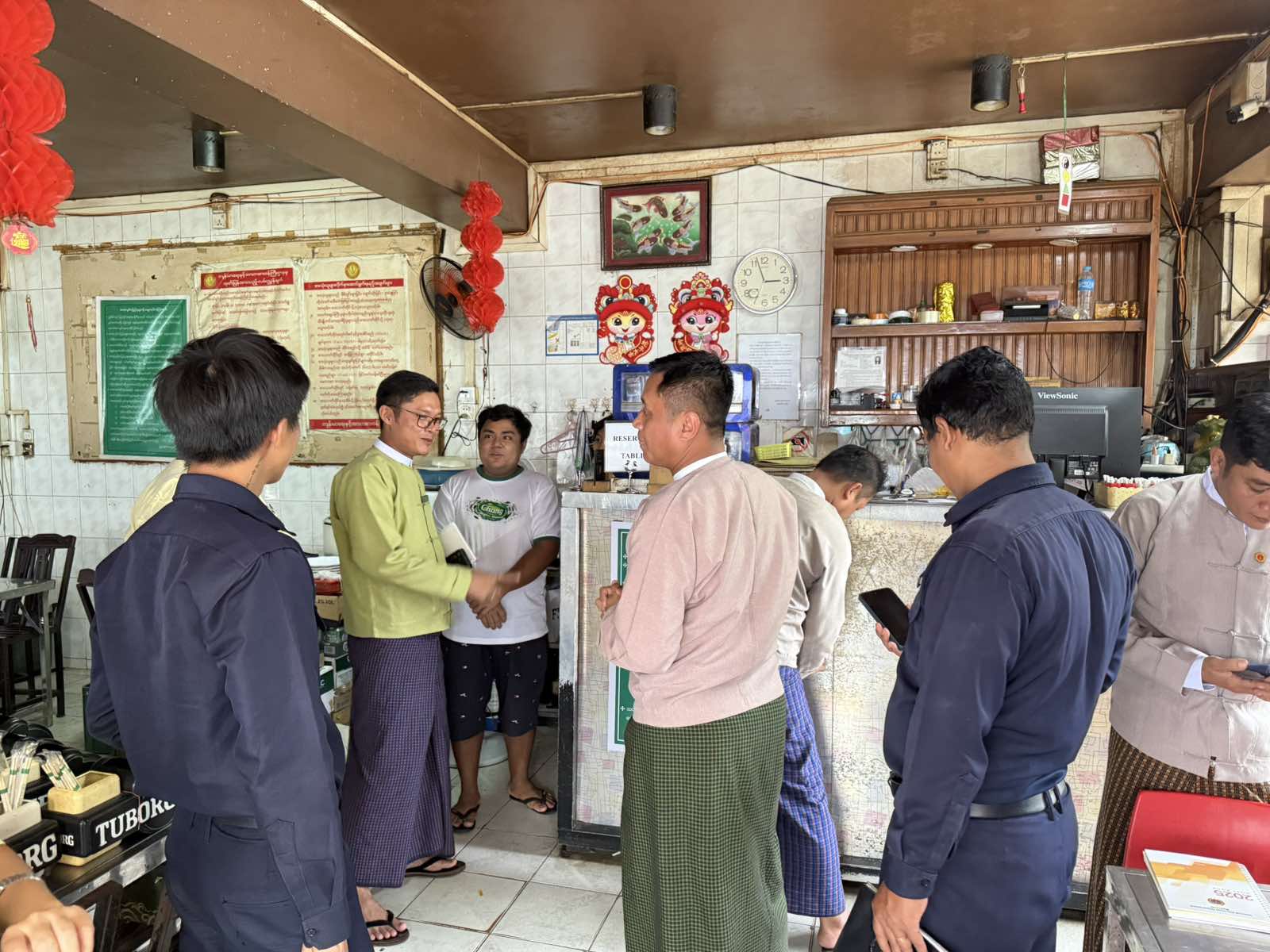 ရန်ကုန်တိုင်းဒေသကြီး၊ ဗိုလ်တထောင်ခရိုင်၊ ပုဇွန်တောင်မြို့နယ်၌ ပြေစာအမှတ်တံဆိပ်ကပ်နှိပ်ရောင်းချရသောဆိုင်များတွင် အခွန်ဆိုင်ရာအသိပညာပေးကြေညာချက်နှင့်ပတ်သက်၍ အများပြည်သူသိရှိနိုင်ရေး အသိပညာပေးဗီနိုင်းချိတ်ဆွဲခြင်းကို ယနေ့နံနက်ပိုင်းက ကွင်းဆင်းစစ်ဆေးခဲ့ကြောင်း သိရသည်။