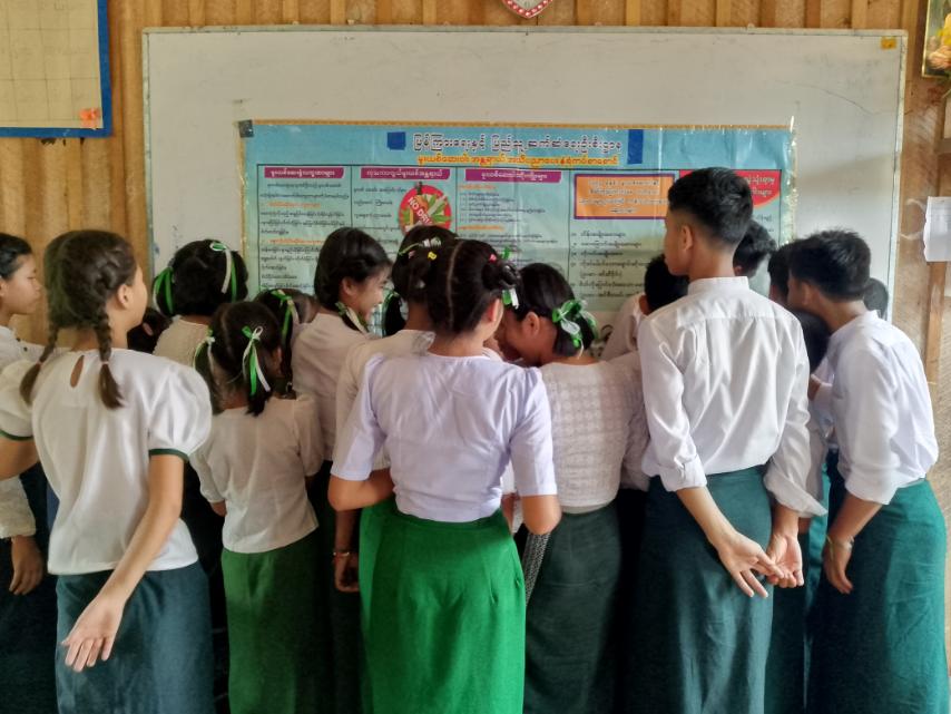 ဆက်လက်၍ မူးယစ်ဆေးဝါး၏ဆိုးကျိုးများ၊ မူးယစ်ဆေးဝါးအမျိူးအစားများ၊ ကျန်းမာရေးနှင့်ပတ်သက်၍ သိသင့်သိထိုက်သည့် အကြောင်းအရာများ စသည့် အသိပညာပေးနံရံကပ်စာစောင်များအား ပြသရာ ကျောင်းသား/ကျောင်းသူများက စိတ်ပါဝင်စားစွာ လေ့လာကြည့်ရှုခဲ့ကြကြောင်း သိရသည်။
