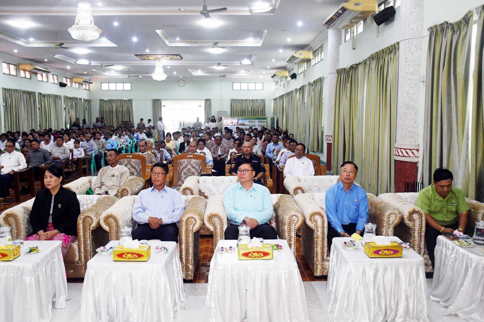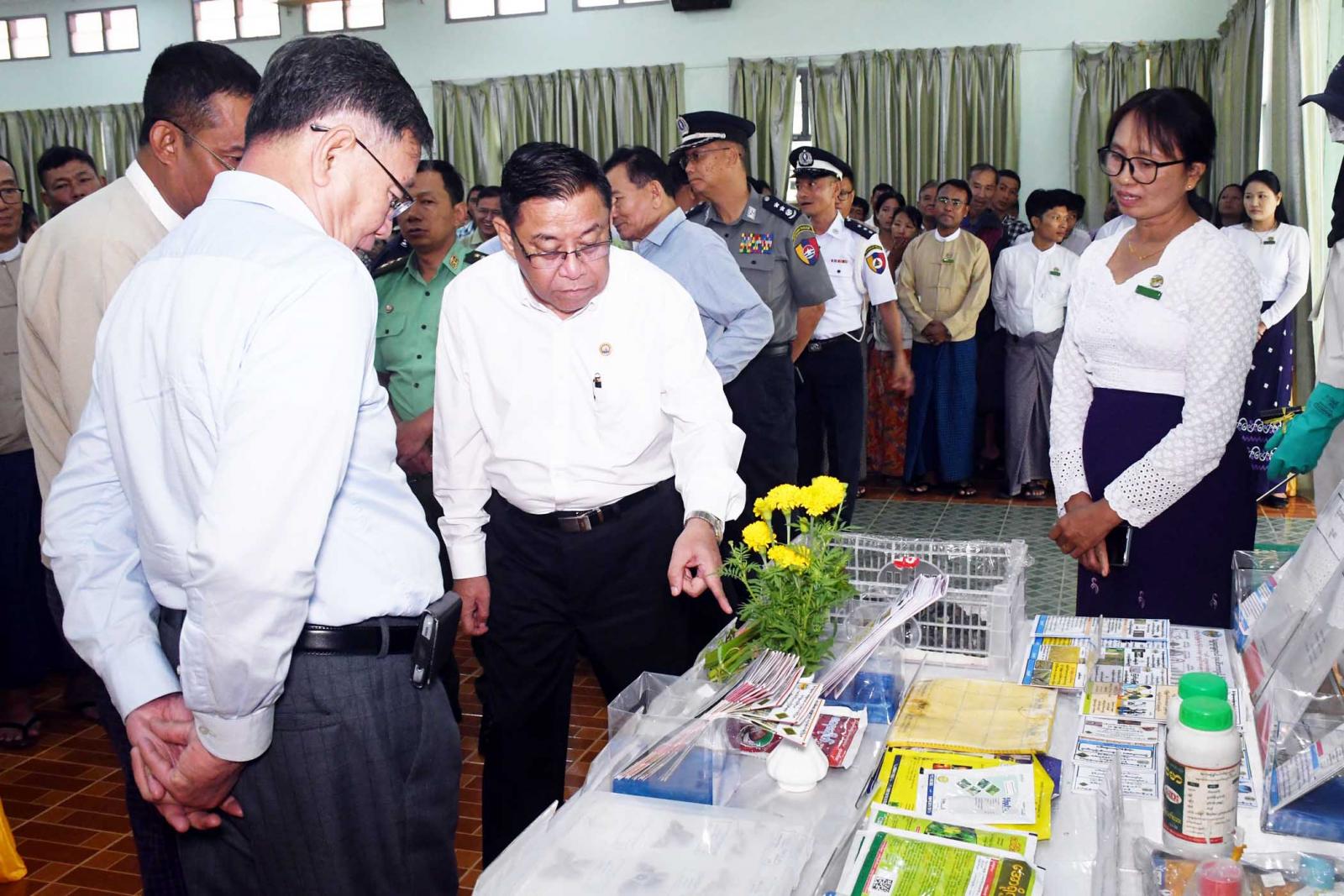 ယင်းနောက်တိုင်းဒေသကြီးဝန်ကြီးချုပ်နှင့် တာဝန်ရှိသူများက အကျိုးဆောင်တောင်သူများအား ရင်းရင်းနှီးနှီး လိုက်လံနှုတ်ဆက်ပြီး ခင်းကျင်း ပြသထားသည့် သွင်းအားစုများအား ကြည့်ရှုအားပေးကြကြောင်း သိရသည်။