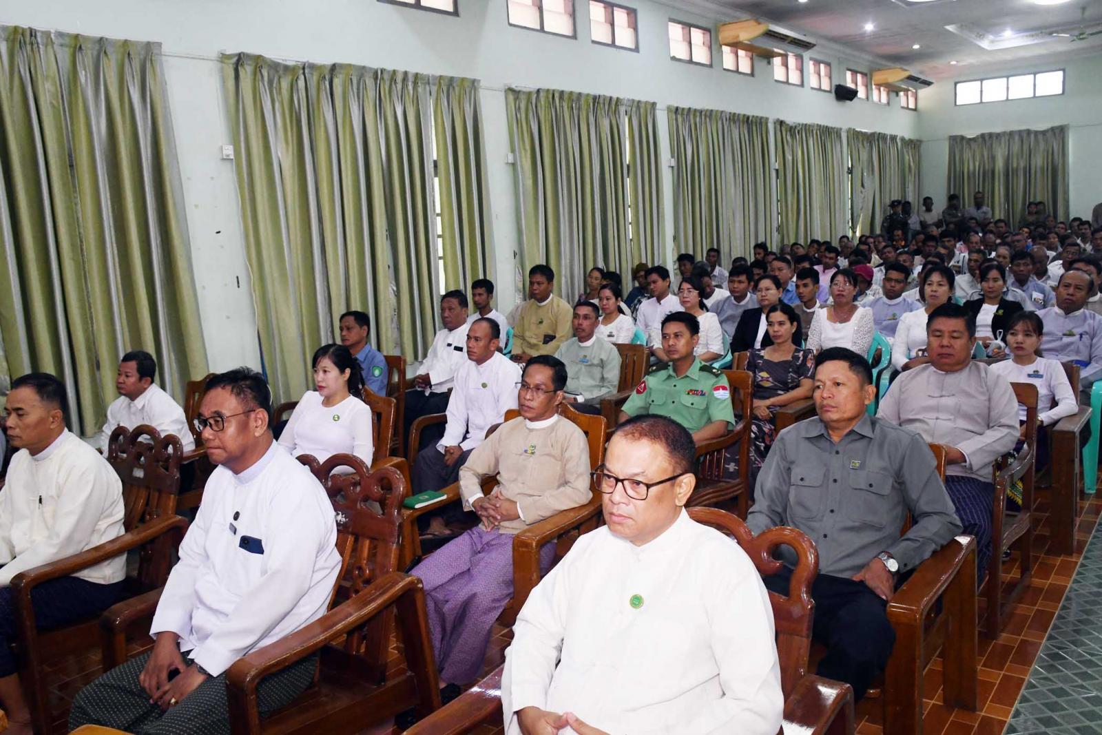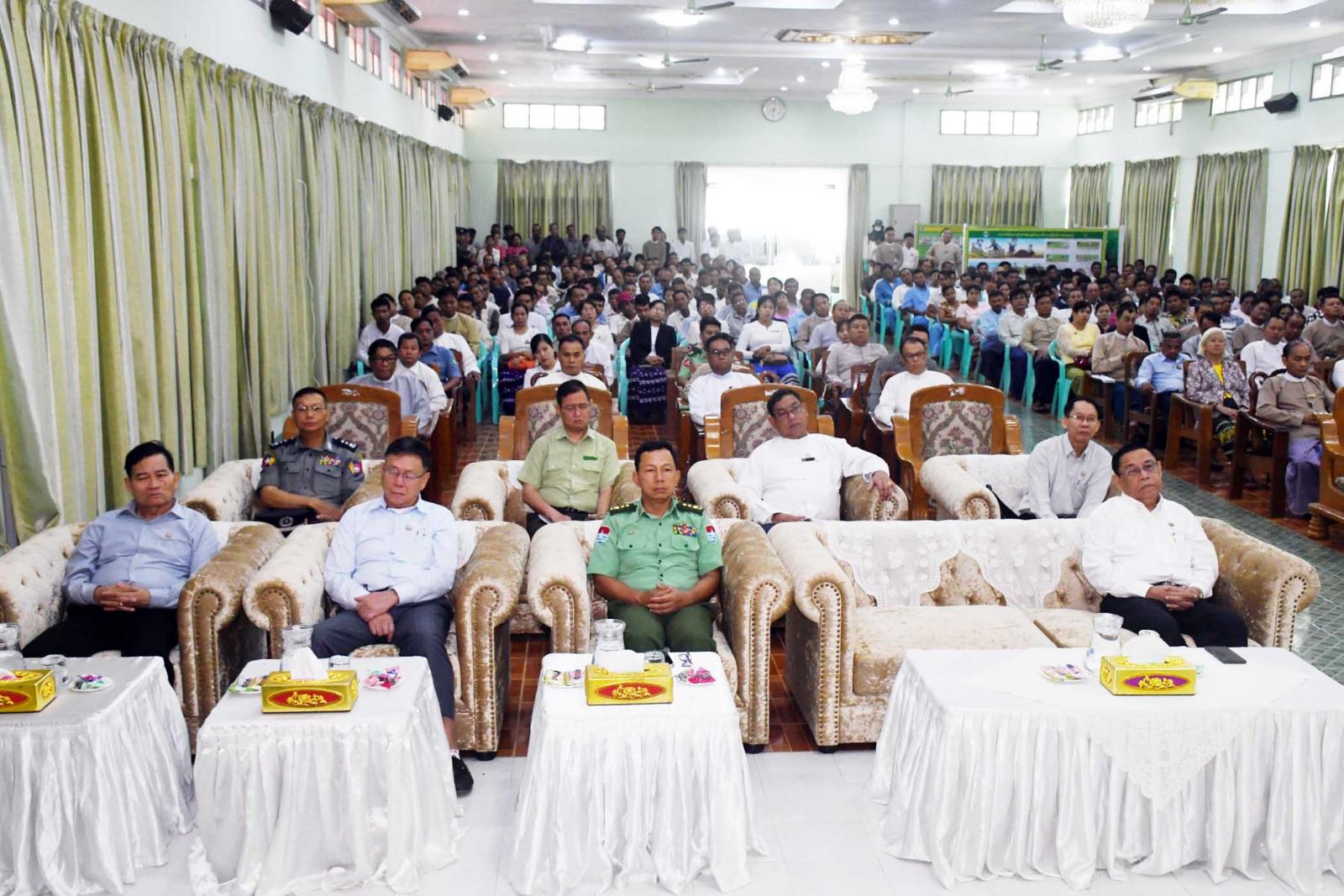 အခမ်းအနားတွင်တိုင်းဒေသကြီးဝန်ကြီးချုပ်ဦးမြတ်ကိုကနိုင်ငံတော်အနေအစိုးရအနေဖြင့် သီးနှံများကို ပန်းတိုင်အထွက်နှုန်းများရရှိရေး အလေးပေးဆောင်ရွက်လျက်ရှိရာ မျိုးကောင်းမျိုးသန့်များ ပြောင်းလဲသုံးစွဲရေး၊ မြေ စနစ်တကျပြုပြင်ခြင်း၊ ဓာတ်မြေဩဇာနှင့် သဘာဝမြေဩဇာများအချိန်ကိုက် အချိုးကျ စနစ်တကျသုံးစွဲ၍ မြေဆီလွှာဖွံ့ဖြိုးတိုးတက်အောင် ဆောင်ရွက်ရေး၊ စိုက်ပျိုးရေ အောင်ရေရရှိရေးနှင့် စိုက်နည်းစနစ်မှန်ကန်ရေးစသည့် မျိုး၊ မြေ၊ ရေ၊ နည်းဆိုသော နည်းလမ်း (၄)သွယ်ပြည့်စုံကောင်းမွန်ရေးတို့ကို ဖြည့်ဆည်းဆောင်ရွက်ပေးလျက်ရှိကြောင်း၊ တိုင်းဒေသကြီးတွင် ဒေသဝမ်းစာဖူလုံရေးအတွက် သီးနှံများပန်းတိုင်အထွက်နှုန်း ရရှိရေးနှင့်တစ်ဧက အထွက်နှုန်းတိုးတက်ရေးကို ဦးတည်ဆောင်ရွက် လျက်ရှိကြောင်း၊ ထားဝယ်ခရိုင်အနေဖြင့် ဒေသဝမ်းစာဖူလုံမှု (၈၇.၅၂) ရာခိုင်နှုန်းသာ ရှိသောကြောင့် ခရိုင်/မြို့နယ်အလိုက် ဖူလုံမှုရာခိုင်နှုန်း တိုးတက်ရရှိမှသာလျှင် တိုင်းဒေသကြီးတစ်ခုလုံး၏ဒေသဝမ်းစာ ဖူလုံမှုတိုးတက်လာမှာဖြစ်သည့်အတွက် မိမိတို့ဒေသ၏သီးနှံများ တစ်ဧကအထွက်နှုန်းတိုးတက်ရန် အလေးထားဆောင်ရွက်ကြရမှာဖြစ်ကြောင်း၊ မိုးစပါးစိုက်ပျိုးနေသည့်အချိန်ကာလတွင် ရေ၊ မြေဒေသနှင့်ကိုက်ညီသော မျိုးကောင်းမျိုးသန့်မျိုးစေ့များ၊ အရည်အသွေးပြည့်မီသော သွင်းအားစုများ၊ ဒေသနှင့်ကိုက်ညီသော စိုက်ပျိုးနည်းစနစ်များဖြင့် မှန်ကန်စွာ စိုက်ပျိုးဆောင် ရွက်နိုင်မှသာ အထွက်ကောင်းသည့် ရလဒ်များ ရရှိနိုင်မှာဖြစ်ကြောင်း၊ တိုင်းဒေသကြီးတွင်ဈေးကွက်ဝင် အမယ်သစ်သီးနှံများဖြစ်သည့် ကိုကိုး၊ ကော်ဖီစသောသီးနှံများ စိုက်ပျိုးဖြစ်ထွန်းလျက်ရှိပြီး တိုးချဲ့စိုက်ပျိုးရန်ဆောင်ရွက်လျက်ရှိကြောင်း၊ ရေ၊ မြေ၊ ရာသီဥတုနှင့် ကိုက်ညီသည့် မျိုးကောင်းမျိုးသန့် ကိုကိုးကော်ဖီ ပျိုးပင်များကို တိုင်းဒေသကြီး ဘဏ္ဍာရန်ပုံငွေဖြင့် အခမဲ့ဖြန့်ဖြူးပေးလျက်ရှိကြောင်း၊ တောင်သူများ၏လူမှုစီးပွားဖွံ့ဖြိုးတိုးတက်ပြီး နိုင်ငံ့စီးပွားမြှင့်တင်ရေးကို ရှေးရှုဆောင်ရွက်တာဖြစ်သည့်အတွက် ယနေ့ပေးအပ်သော သွင်းအားစုများကို တောင်သူများအနေဖြင့်ထိမိစွာအသုံးချပြီး ပန်းတိုင်အထွက်နှုန်းရရှိရေးကို ဦးတည်ဆောင်ရွက်ရန် လိုအပ်သလို သီးထပ်၊ သီးညှပ်ဧကများတိုး တက်ရရှိကာ သီးထပ်စွမ်းအားတိုးတက်နိုင်ရန် ဆထက်ထမ်းပိုးဆောင်ရွက်ရန် လိုအပ်ကြောင်း၊ တိုင်းဒေသကြီးအစိုးရအဖွဲ့အနေဖြင့် လယ်ယာကဏ္ဍ ဖွံ့ဖြိုးတိုးတက်ရေးအတွက် ဘက်ပေါင်းစုံမှ တွန်းအားပေးကူညီဆောင်ရွက်လျက်ရှိသလို စိုက်ပျိုး ထုတ်လုပ်မှု တိုးတက်မြင့်မားအောင်ဆောင်ရွက်သည့် တောင်သူများက အင်တိုက်