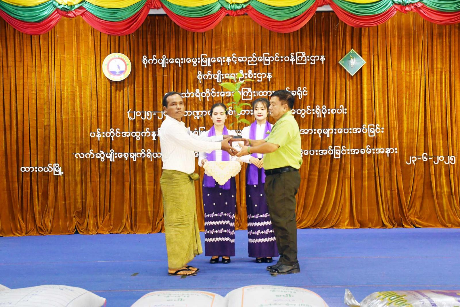 ၂ဝ၂၅-၂ဝ၂၆ ဘဏ္ဍာရေးနှစ်၊ ထားဝယ်ခရိုင်အတွင်း မိုးစပါးပန်းတိုင်အထွက်နှုန်းရရှိရေး စံပြကျေးရွာများအား သွင်းအားစုများ၊ ကိုကိုး၊ ကော်ဖီပျိုးပင်များ ပေးအပ်ခြင်းနှင့် လက်ဆွဲမျိုးစေ့ချ ကိရိယာများ ပေးအပ်ပွဲအခမ်းအနားကို ယမန်နေ့နံနက် ၈ နာရီက တနင်္သာရီတိုင်းဒေသကြီး၊ ထားဝယ်မြို့၊ မြို့တော်ခန်းမ၌ ကျင်းပခဲ့သည်။