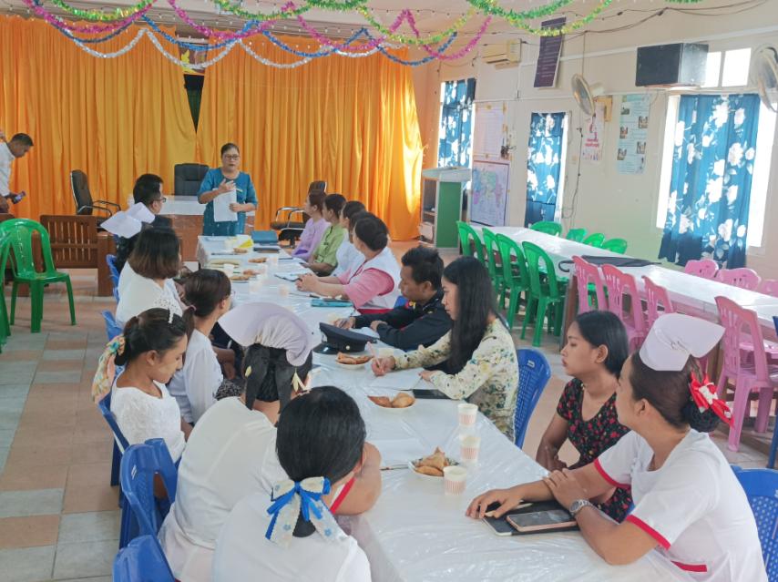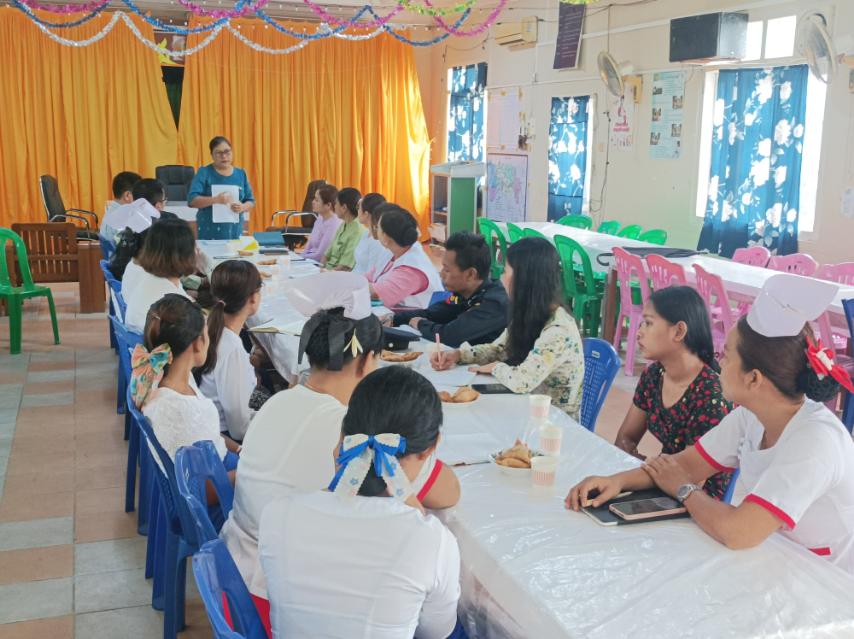ဦးစွာ မြို့နယ်ကျန်းမာရေးဦးစီးဌာနမှူး ဒေါက်တာ ခင်မောင်ရင်က HIV နှင့် ကာလသားရောဂါကူးစက်ပုံ၊ ပြည်သူ့ဆေးရုံတွင် လက်ရှိကုသပေးနေမှုများ၊ လက်ရှိလူနာများအား ကာကွယ်ကုသရေးအပိုင်းတွင် NGO နှင့် private ဆေးခန်းများမှ ပါဝင်ဆောင်ရွက်ပေးနေမှုများအကြောင်း စသည့်အကြောင်းအရာများကို ဆွေးနွေးဟောပြောခဲ့သည်။ ဆက်လက်၍ မြို့နယ်သူနာပြုဆရာမ ဒေါ်နှင်းဖြူက ကိုယ်၀န်ဆောင် HlV ရောဂါခံစားနေသူများအနေဖြင့် ဆေးရုံတွင်ဆေးကုသမှုများကို ဂရုစိုက်ခံယူသင့်ပါကြောင်းနှင့် ဆေးရုံသို့ ပုံမှန်လာရောက်ကုသမှုခံယူသင့်ပါကြောင်း၊ HIV ကာကွယ်ရေးနှင့် ကုသရေးအကြောင်းအရာများကို ရှင်းလင်းပြောကြားခဲ့ကြောင်း သိရသည်။