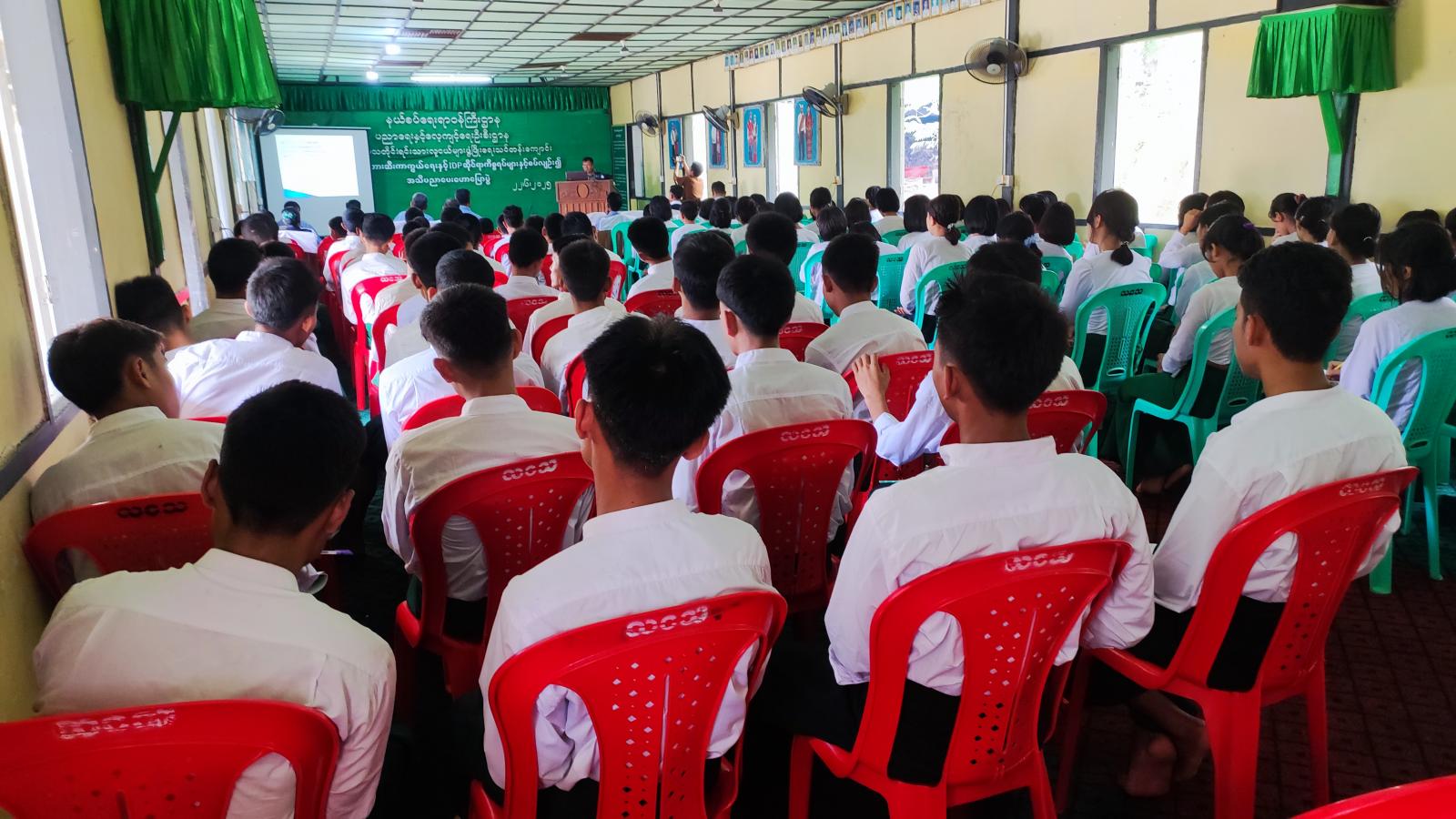 အခမ်းအနားတွင် မြန်မာနိုင်ငံရဲတပ်ဖွဲ့၊ မြို့နယ်ရဲတပ်ဖွဲ့မှူး ရဲမှူးဉာဏ်မြင့်က လူကုန်ကူးမှုတားဆီးကာကွယ်ရေးဆိုင်ရာ ကိစ္စရပ်များနှင့်ပတ်သက်၍လည်းကောင်း၊ ဒုတိယမြို့နယ် ရဲတပ်ဖွဲ့မှူး ဒုရဲမှူးဇော်နိုင်ဦးက မူးယစ်ဆေးဝါးနှင့်စိတ်ကိုပြောင်းလဲစေသော ဆေးဝါးများဆိုင်ရာ ဥပဒေများနှင့်ပတ်သက်၍လည်းကောင်း မြို့နယ်ဥပဒေအရာရှိ ဦးစိုင်းအာကာငြိမ်းချမ်းက ကလေးသူငယ်အခွင့်အရေးများဆိုင်ရာ ဥပဒေများနှင့်ပတ်သက်၍လည်းကောင်း အကျယ်တဝင့် ရှင်းလင်းပြောကြားခဲ့ပြီးကျောင်းအုပ်ဆရာကြီး ဦးမြင့်သူက ကျေးဇူးတင်စကား ပြောကြားခဲ့သည်။