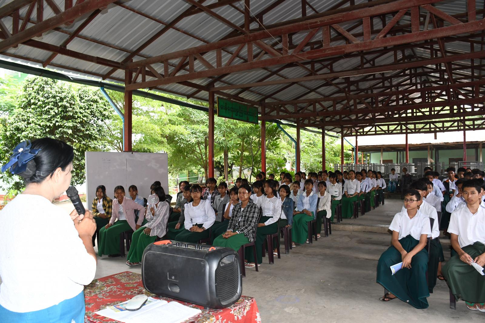 အဆိုပါ အခမ်းအနားတွင် ပြန်ကြားရေးနှင့်ပြည်သူ့ဆက်ဆံရေးဦးစီးဌာနမှ ဦးစီးအရာရှိဒေါ်ခင် စောလွင်က ကျောင်းသား၊ ကျောင်းသူများအား မူးယစ်ဆေးဝါးအန္တရာယ်အကြောင်း သိကောင်းစရာများ၊ မူးယစ်ဆေးဝါးသုံးစွဲမိပါက ဖြစ်တတ်သော စိတ်ပိုင်းဆိုင်ရာ၊ ရုပ်ပိုင်းဆိုင်ရာ ရောဂါလက္ခဏာများ၊ မူးယစ်ဆေးဝါး၏ဆိုးကျိုးများ စသည့်အကြောင်းများကို အသိပညာပေးဟောပြောခဲ့သည်။ ဆက်လက်ပြီး အပြည်ပြည်ဆိုင်ရာ မူးယစ်ဆေးဝါအလွဲသုံးမှုနှင့် တရားမဝင် ရောင်းဝယ်မှုတိုက်ဖျက်ရေးနေ့အထိမ်းအမှတ်အကြို သတင်းစကားလက်ကမ်းစာစောင်များကိုလည်း ယင်းကျောင်းရှိ ဟောပြောပွဲတက်ရောက်လာသည့် ကျောင်းသား၊ ကျောင်းသူလေးများအား အခမဲ့ ဖြန့်ဝေဆောင်ရွက်ပေးခဲ့ကြောင်း သိရသည်။ ယင်းဟောပြောပွဲကို Grade-7 ကျောင်းသား၊ ကျောင်းသူလေးများနှင့် Grade-8 ကျောင်းသား၊ ကျောင်းသူလေးများ စုစုပေါင်း(၁၃၀)ဦး တက်ရောက်ခဲ့ကြောင်း သိရသည်။