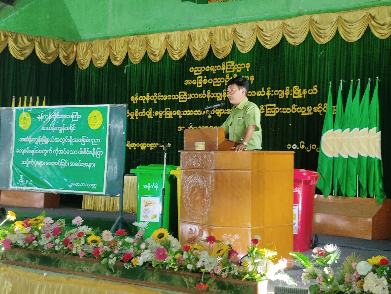 ရန်ကုန်တိုင်းဒေသကြီး၊ သင်္ဃန်းကျွန်းမြို့နယ် မြို့နယ်စီမံအုပ်ချုပ်ရေးအဖွဲ့၏ ဦးဆောင်မှုဖြင့် အခြေခံပညာအထက်တန်းကျောင်း(သုဝဏ္ဏ)တွင် ယမန်နေ့ နေ့လယ် ၁ နာရီအချိန်က အမှိုက်ခွဲခြားစွန်ပစ်သည့် ရောင်စုံအမှိုက်ပုံး ဝါ၊ စိမ်း၊ နီ၊ ပြာ (၇) စုံအား သင်္ဃန်းကျွန်းမြို့နယ်အတွင်း လိုအပ်လျက်ရှိသည့် အခြေခံပညာအထက်တန်းကျောင်း (၅) ကျောင်းနှင့် အခြေခံပညာအထက်တန်းကျောင်းခွဲ (၂)ကျောင်းတို့အား ပေးအပ်လှူဒါန်းသွားမည်ဟုသိရသည်။