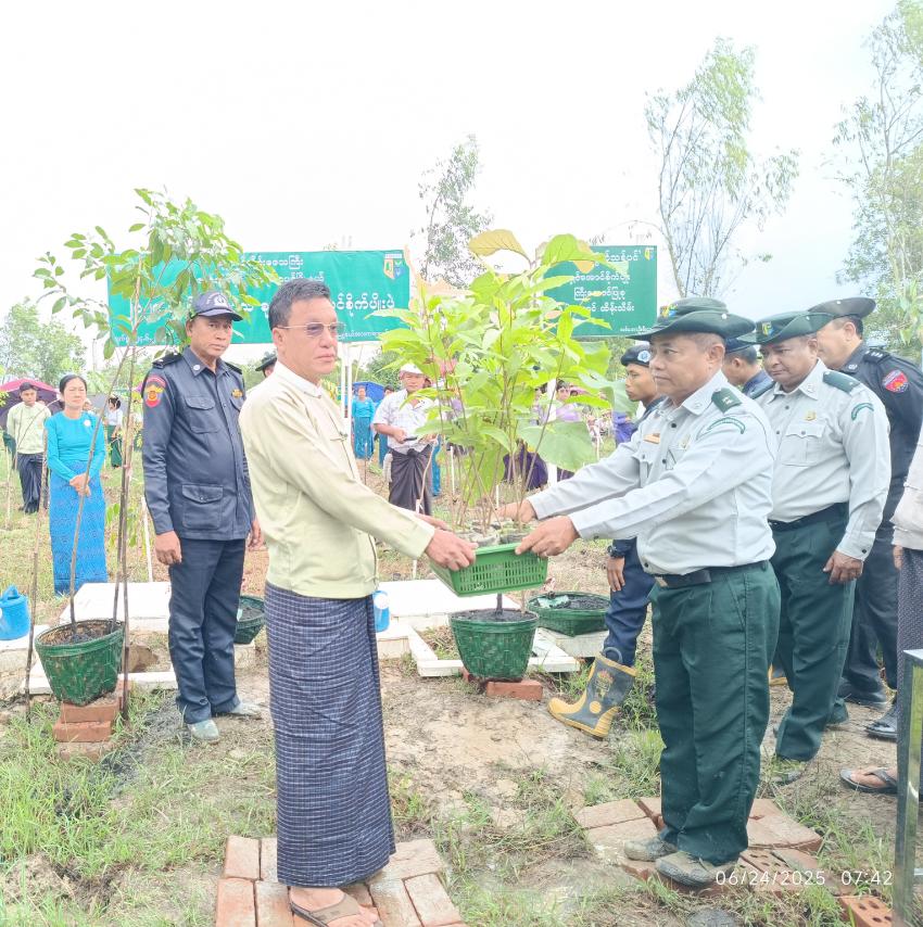 ထို့နောက် မြို့နယ်စီမံအုပ်ချုပ်ရေးအဖွဲ့ဥက္ကဋ္ဌ၊ မြို့နယ်စီမံအုပ်ချုပ်ရေးအဖွဲ့ဝင်များ၊ မြို့နယ်ဌာနဆိုင်ရာတာဝန်ရှိသူများ၊ မြို့နယ်သစ်တောဦးစီးဌာနမှ ဝန်ထမ်းများ၊ မြို့နယ်မီးသတ်တပ်ဖွဲ့ဝင်များ၊ မြို့နယ်မိခင်နှင့်ကလေးစောင့်ရှောက်ရေးအသင်းအဖွဲ့ဝင်များ၊ မြို့နယ်အမျိုးသမီးရေးရာအဖွဲ့ဝင်များ၊ မြို့နယ်ကြက်ခြေနီတပ်ဖွဲ့ဝင်များ၊ ဆရာ၊ ဆရာမများ၊ ကျောင်းသား၊ ကျောင်းသူများ၊ ရပ်ကွက်/ ကျေးရွာအုပ်ချုပ်ရေးမှူးများနှင့် ဒေသခံပြည်သူ (၃၀၀)ကျော်တို့က ကျွန်း(၁)ပင်၊ ကံကော်(၁)ပင်၊ မယ်ဇယ်(၁)ပင်၊ ခရေ(၁)ပင်၊ ပျဉ်းကတိုး(၂၀၀)၊ မဟော်ဂနီ(၅၀)ပင်၊ မန်ဂျန်ရှား(၃၀၀)ပင်၊ ပျဉ်မးပင်(၃၆၄)ပင်၊ စုစုပေါင်း သစ်မျိုး(၈)မျိုး အပင်ပေါင်း (၉၁၈)ပင်တို့ကို စုပေါင်းစိုက်ပျိုးခဲ့ကြကြောင်း သိရသည်။